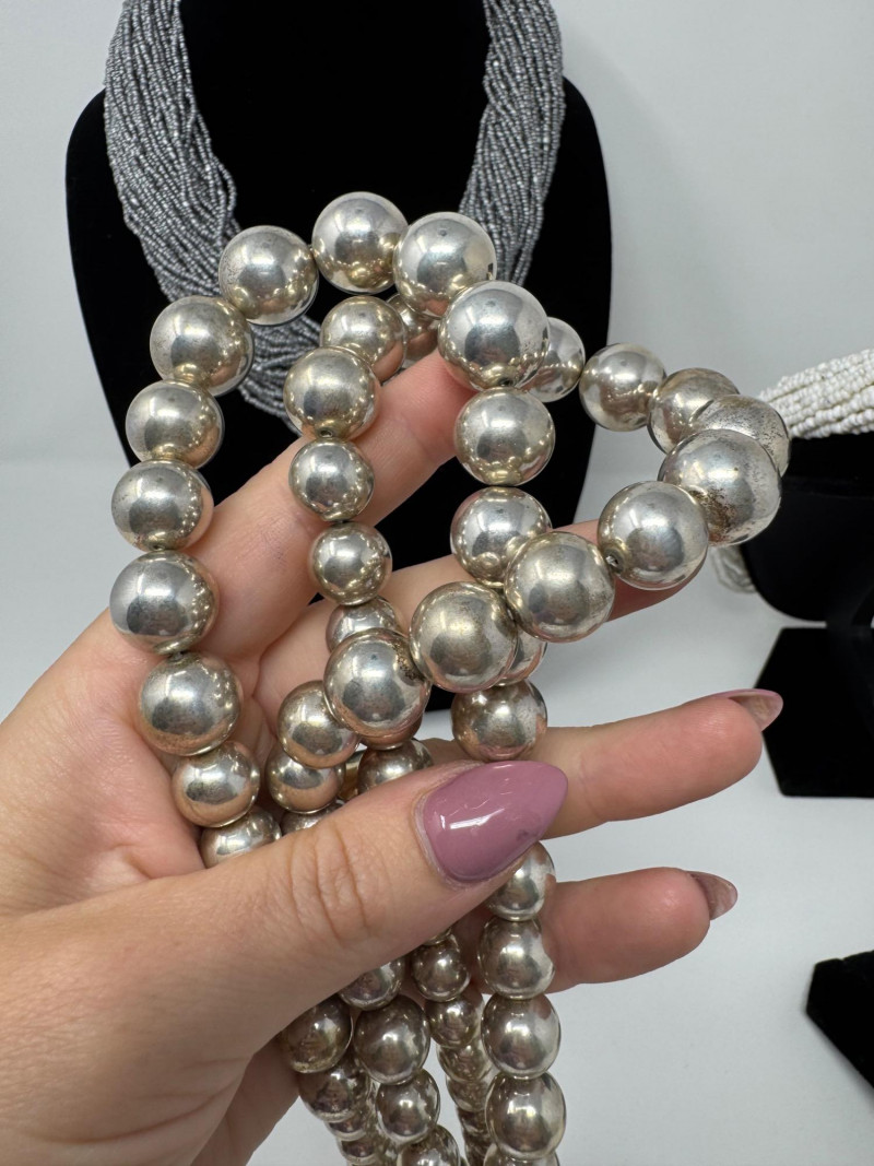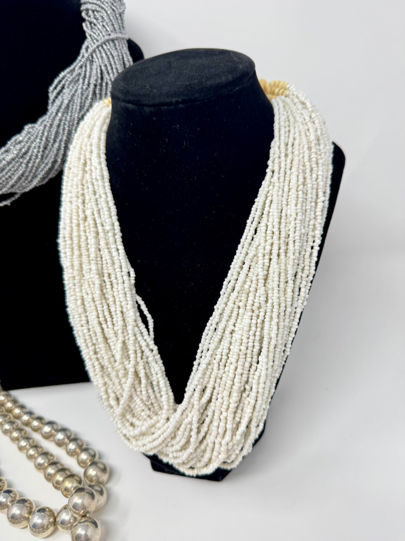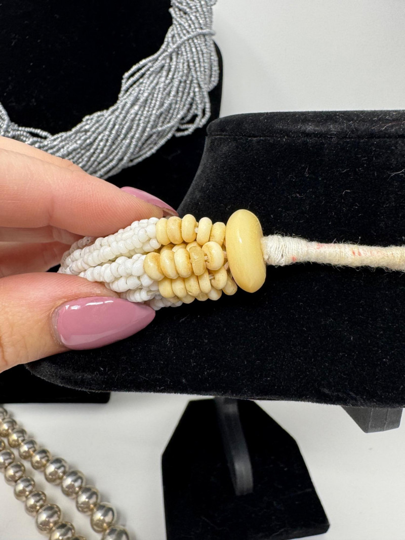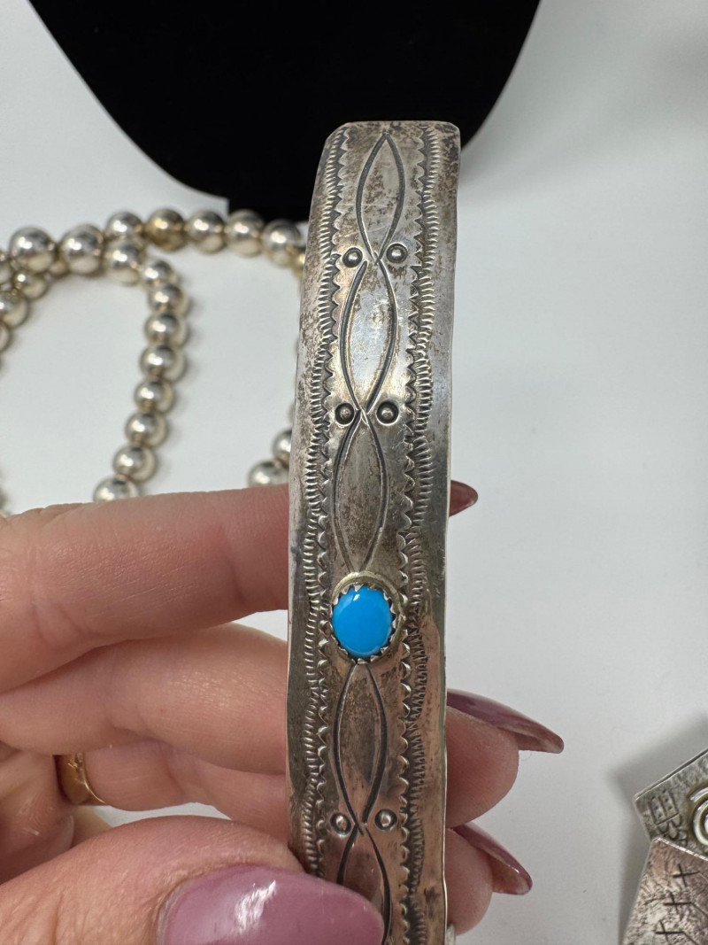 Sterling Pieces & Beaded Necklaces w/ Bone, Turquoise & More. Disclaimer: We do not test all metals. We have only tested if specifically states so. By placing a bid, you acknowledge and agree that you are purchasing the item "as is" and without any guarantee of metal quality. We do not offer refunds based on metal content or purity.