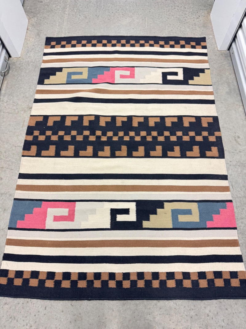 Handwoven Southwestern Tribal Rug w/ Geometric Patterns. 48 x 70”