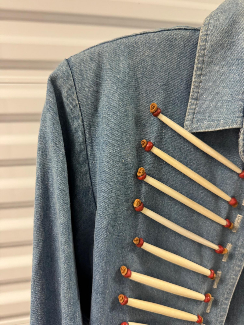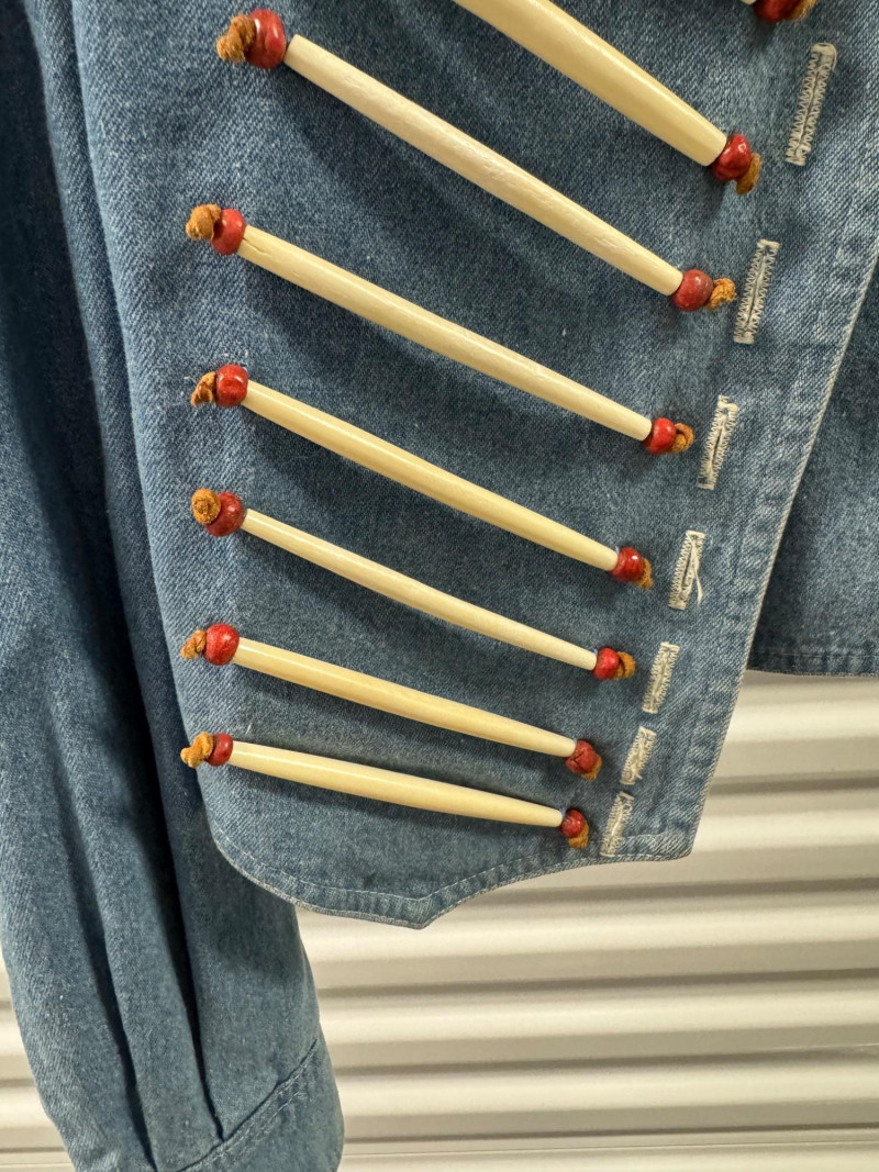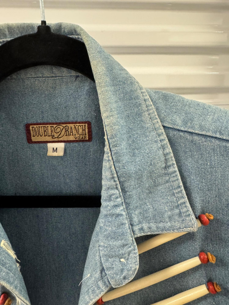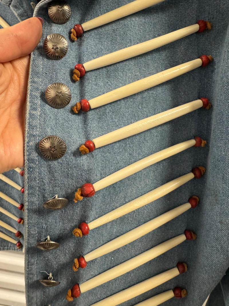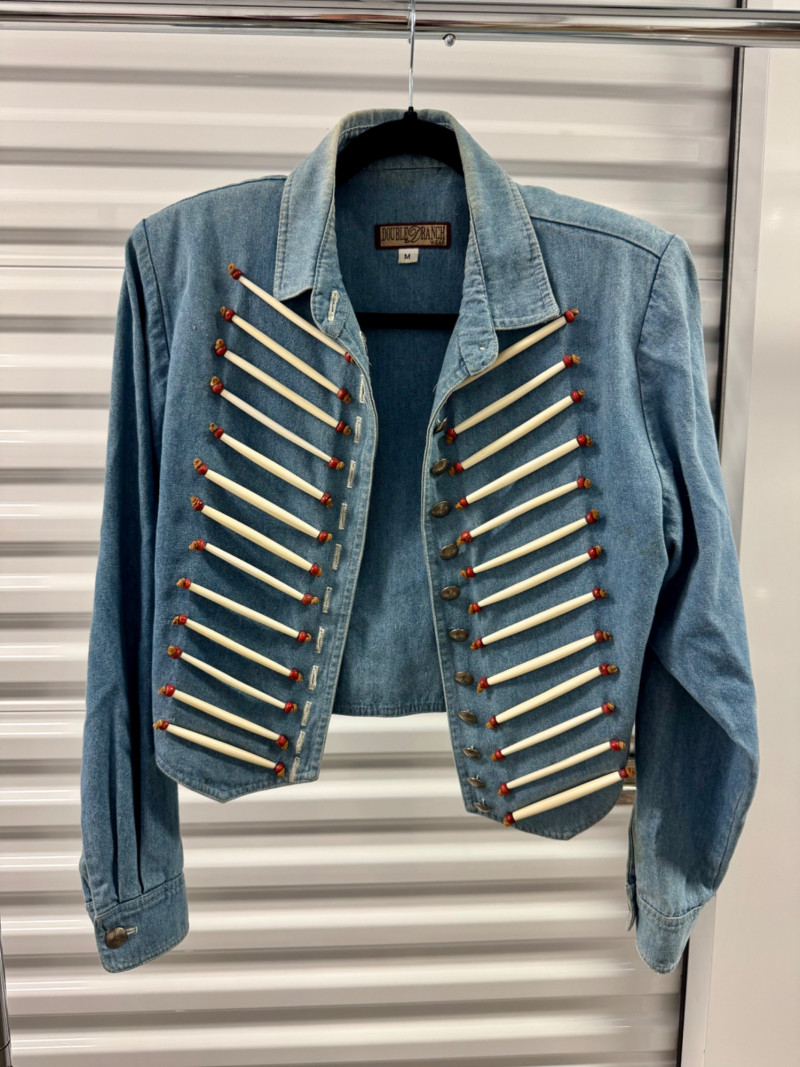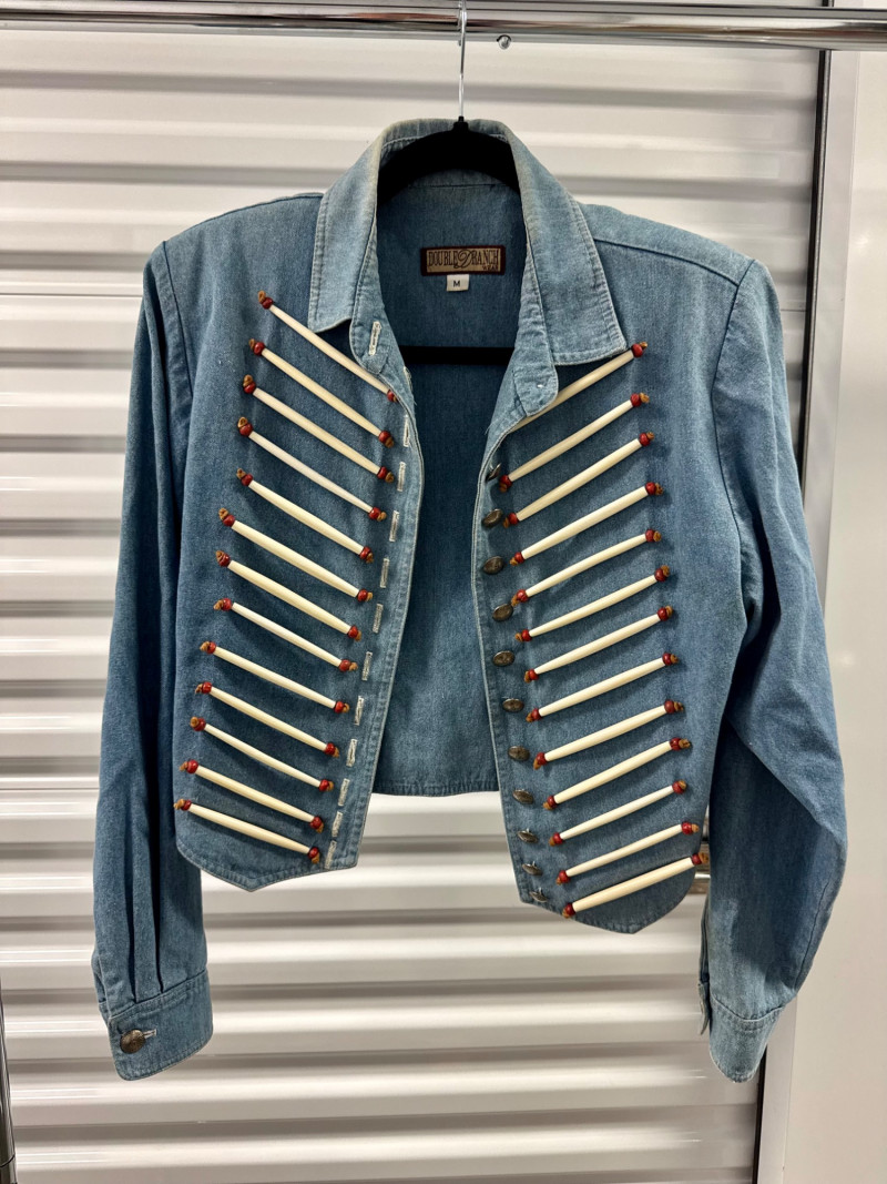 Vintage Double D Ranchwear Denim Jacket w/ Bone & Bead Detail.