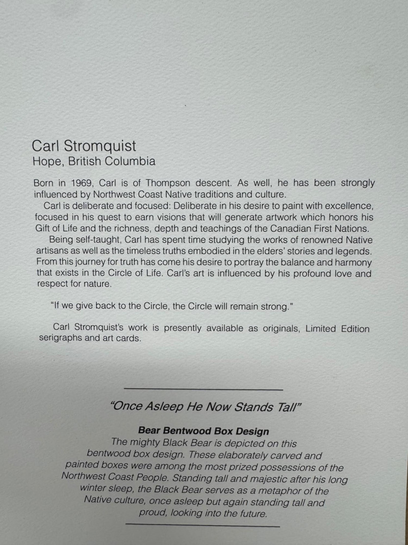 Signed Carl Stromquist "Once Asleep He Now Stands Tall" Bear Print. 11 x 13.5”