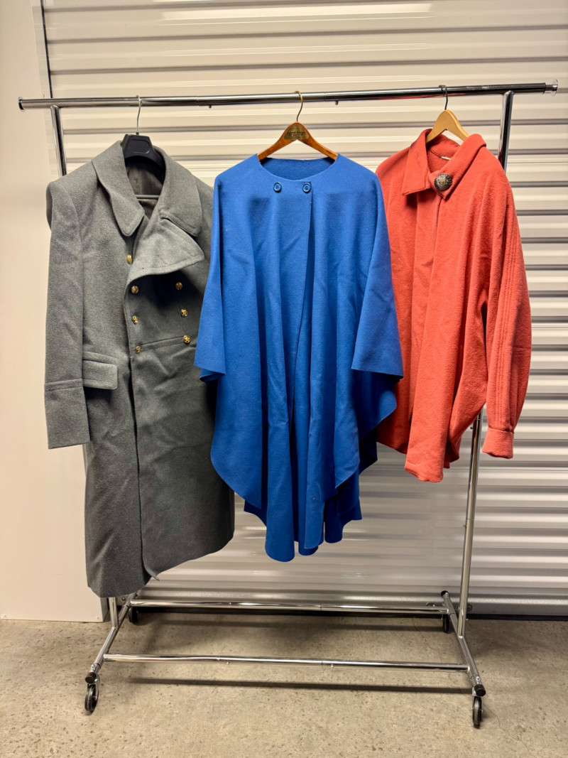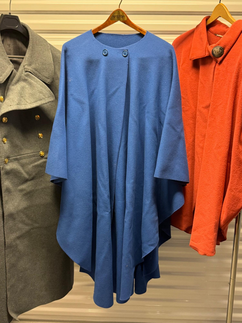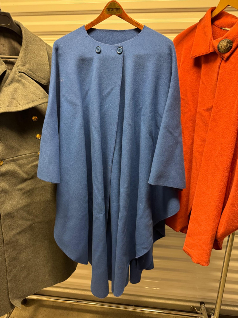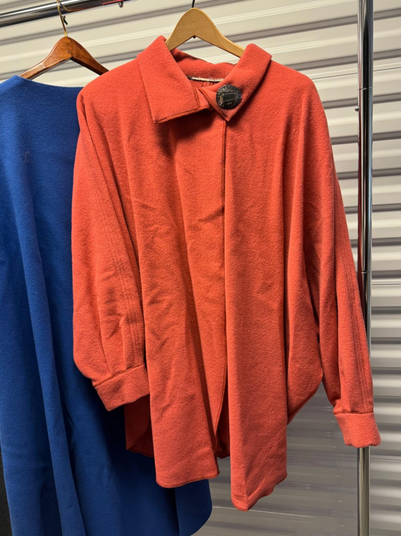 Wool Coat + 2 Cape Jackets incl. Sterling Southwest Brooch. Disclaimer: We do not test all metals. We have only tested if specifically states so. By placing a bid, you acknowledge and agree that you are purchasing the item "as is" and without any guarantee of metal quality. We do not offer refunds based on metal content or purity.
