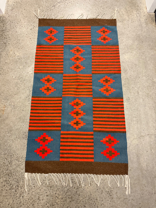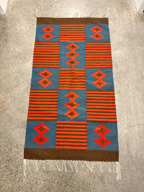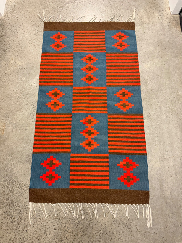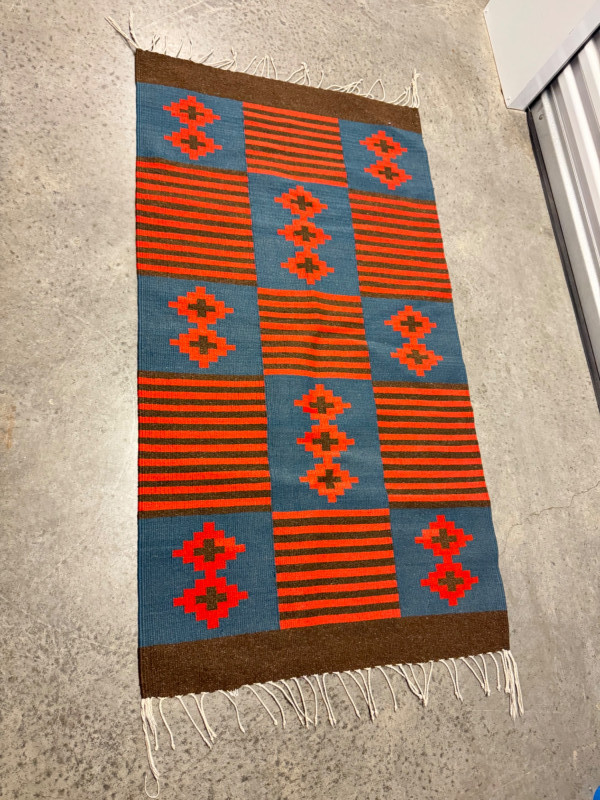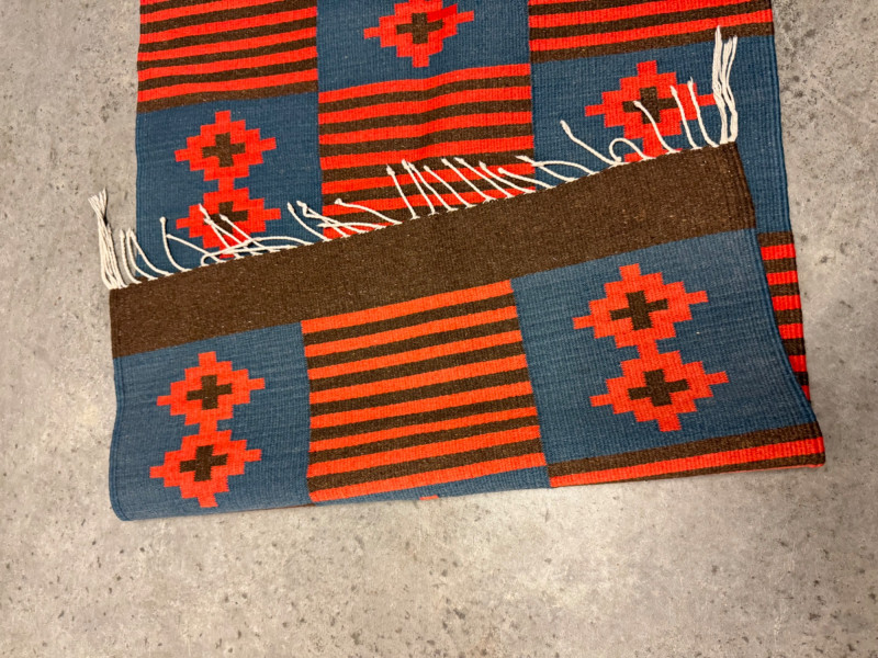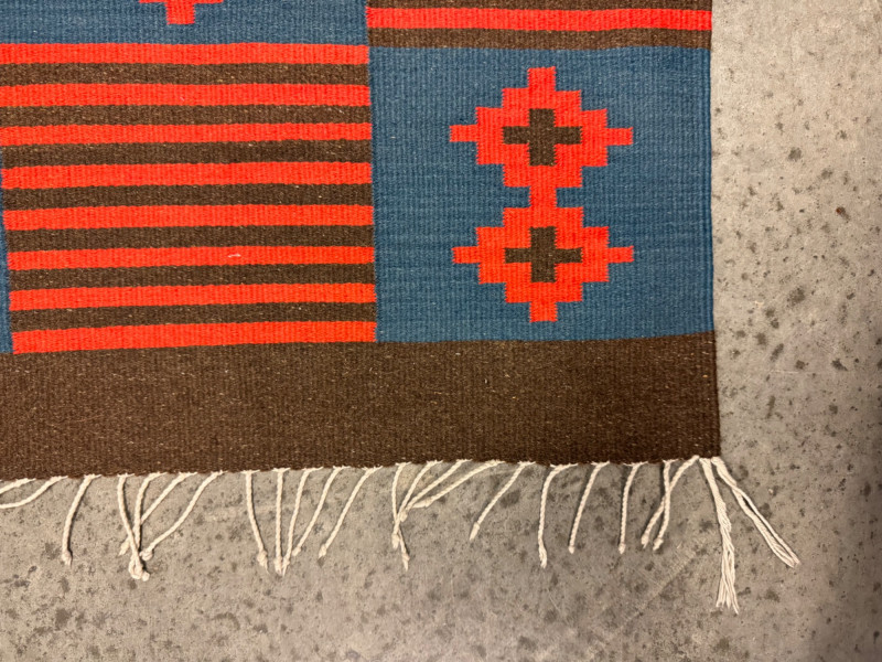 Red & Blue Wool Flatweave Rug w/ Geometric Pattern. 57 x 30”