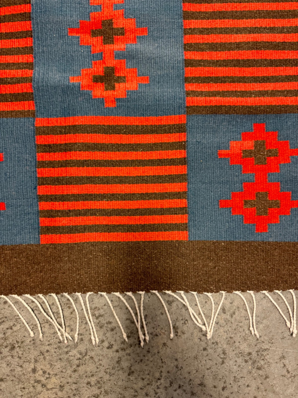 Lot # 78 - Red & Blue Wool Flatweave Rug w/ Geometric Pattern