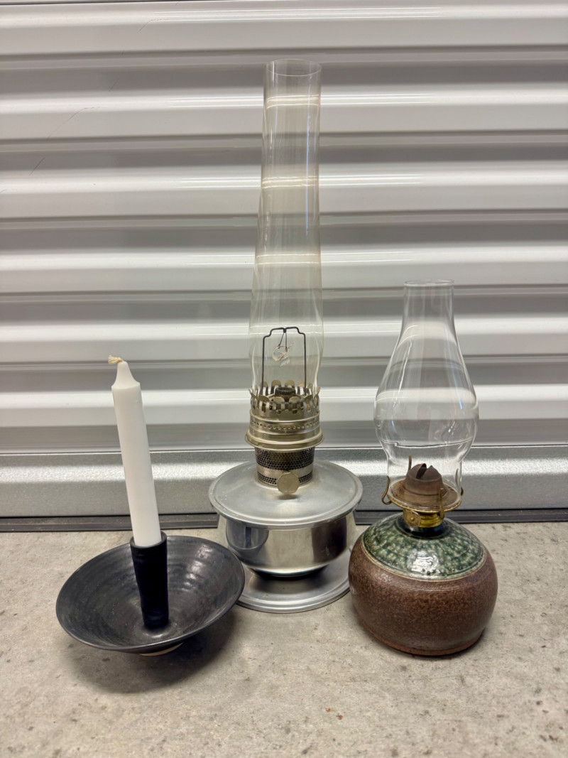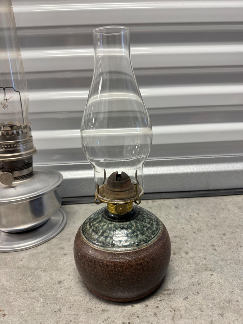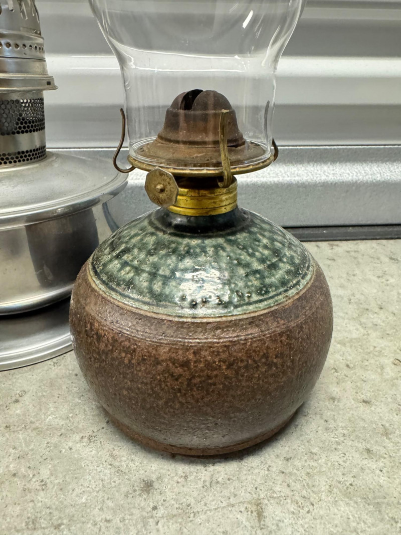 Aladdin Lamp, Signed Pottery Oil Lamp, & Siv Andersson Candle Holder. Oil Lamps 12-20”