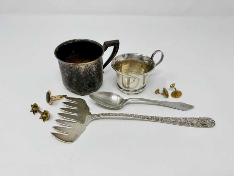 Lot # 89 - Extra Precious Metal Lot – 14k Pin (3.90g) & Mixed Sterling (133.49g)