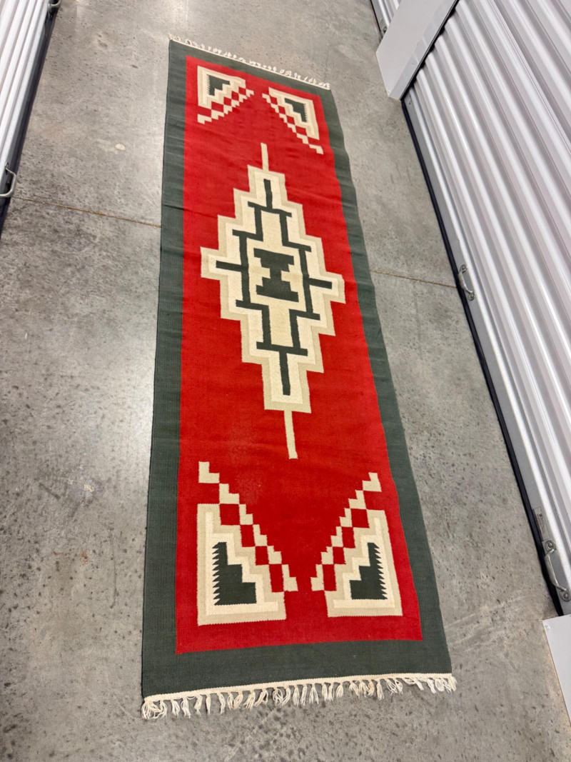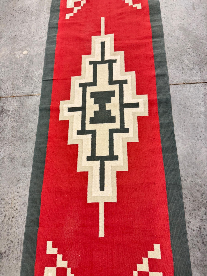 Lot # 98 - Southwestern Style Geometric Flat Weave Runner Rug - Red & Grey