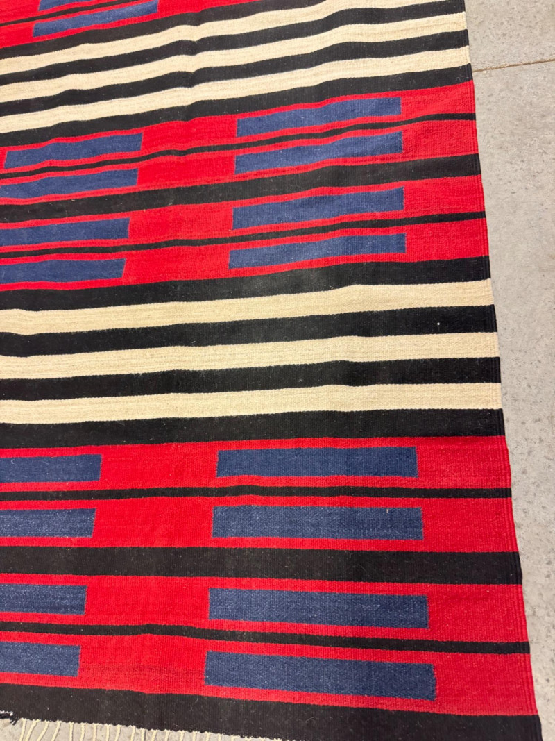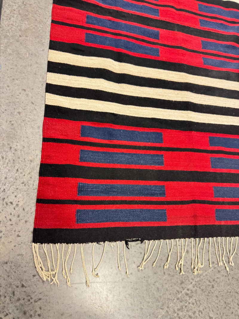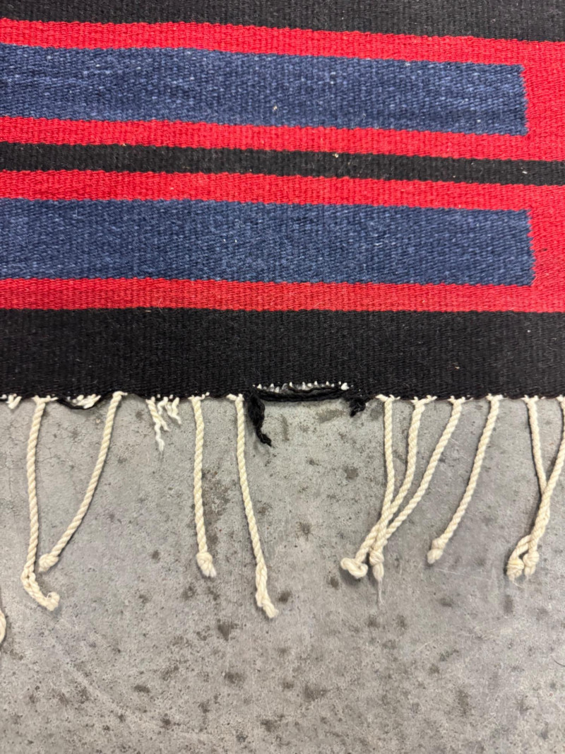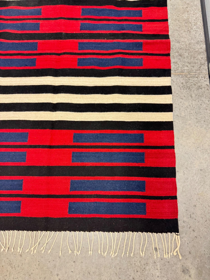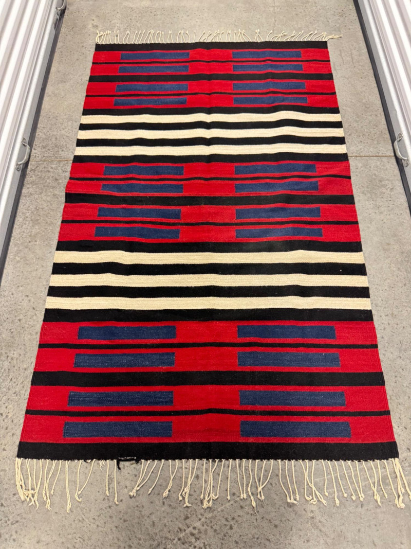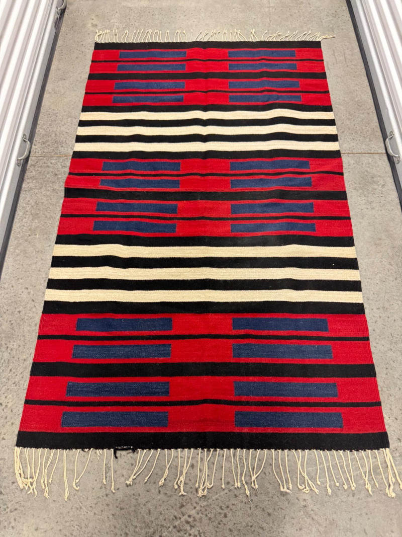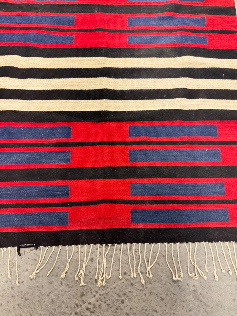 Lot # 100 - Authentic Navajo Style Wool Rug - Red, Black, & Blue Stripes