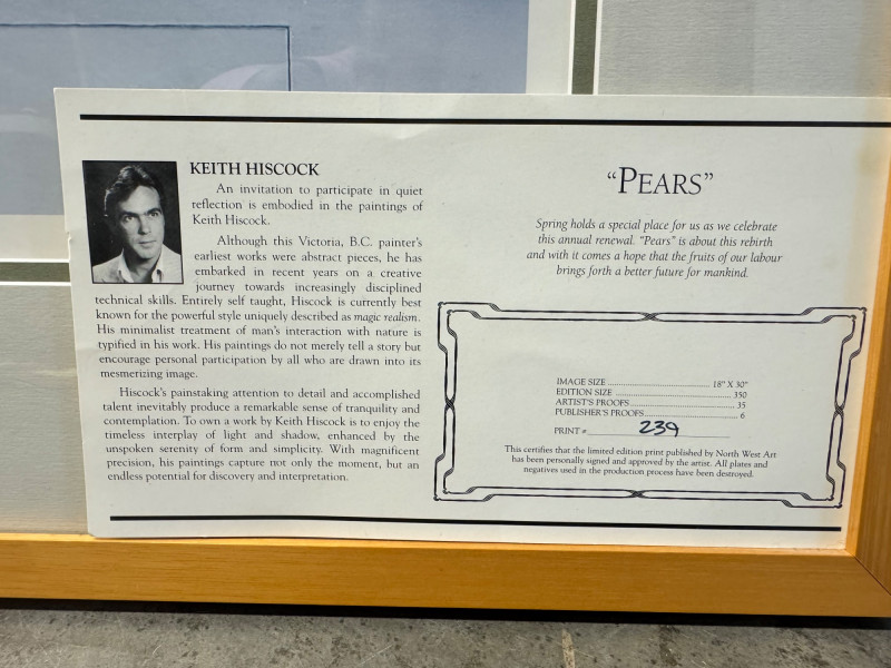 Lot # 104 - Large Authenticated Keith Hiscock "Pears" Print