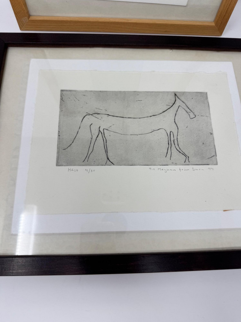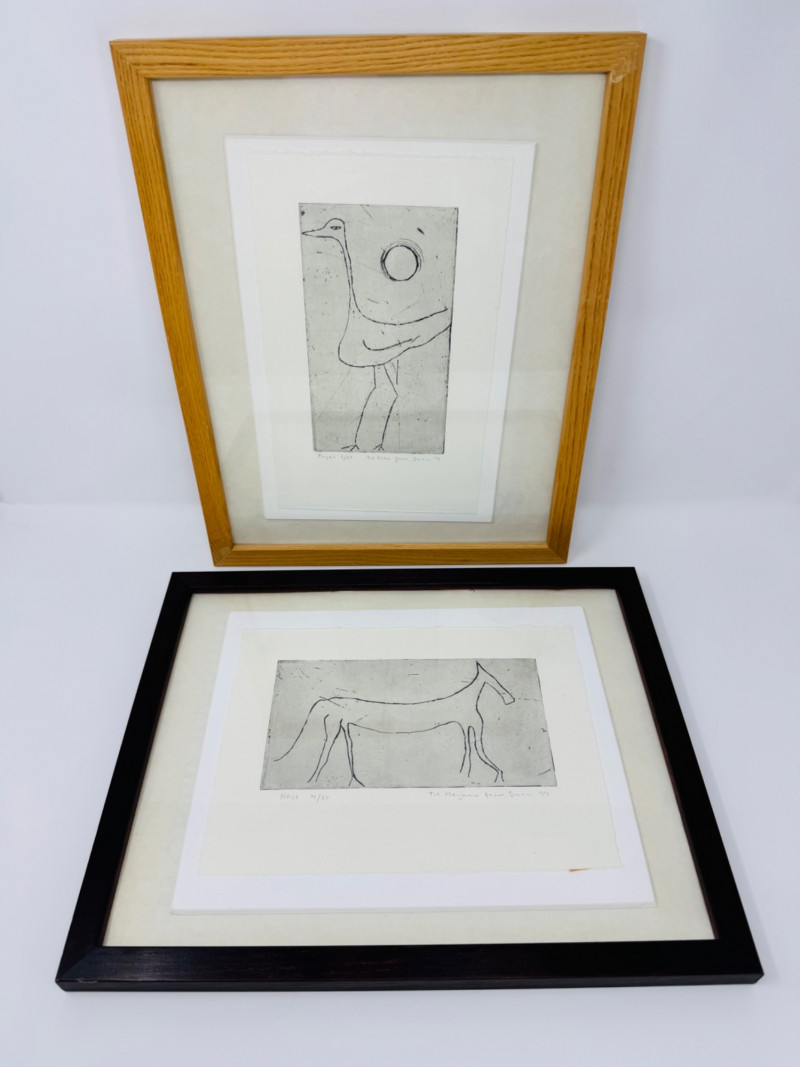 Framed Bird & Horse Art Prints by Sara - 1999 Set, Signed & Numbered.