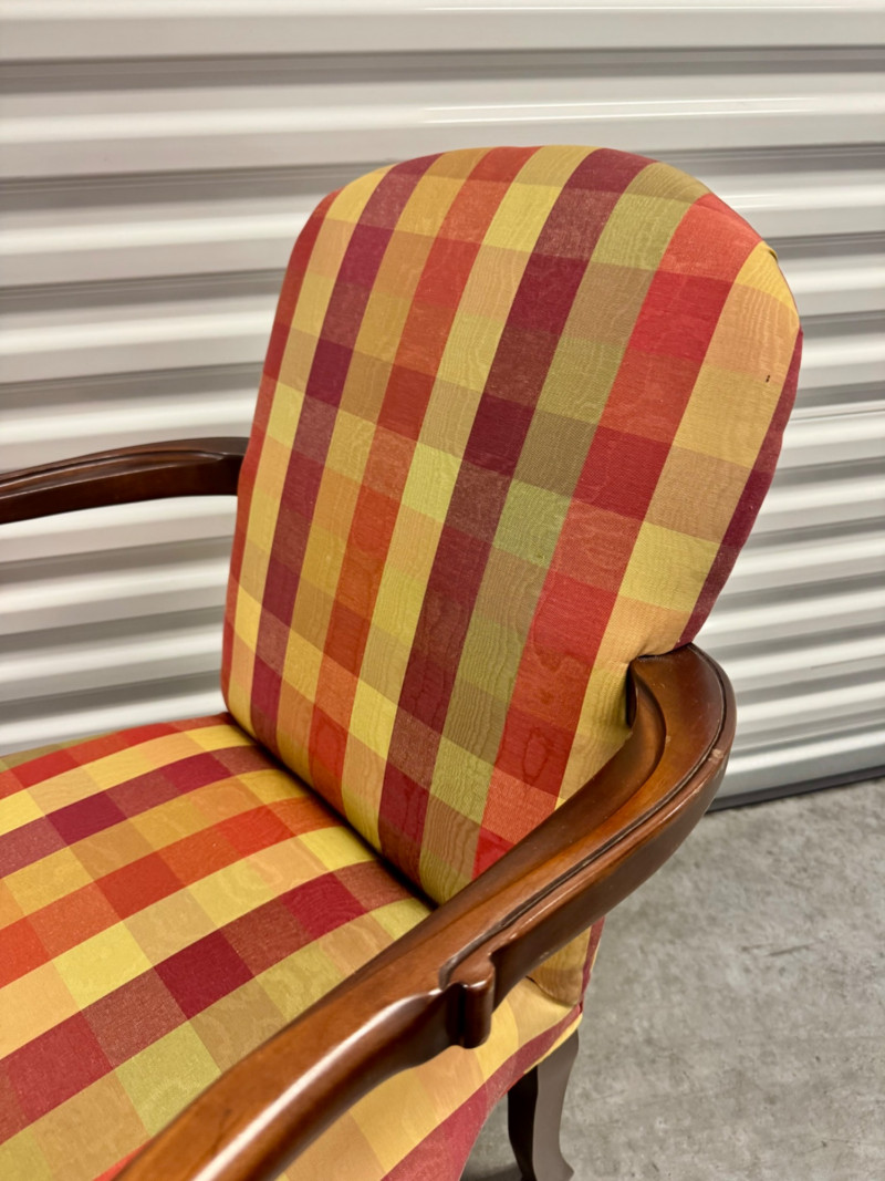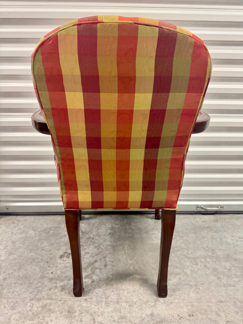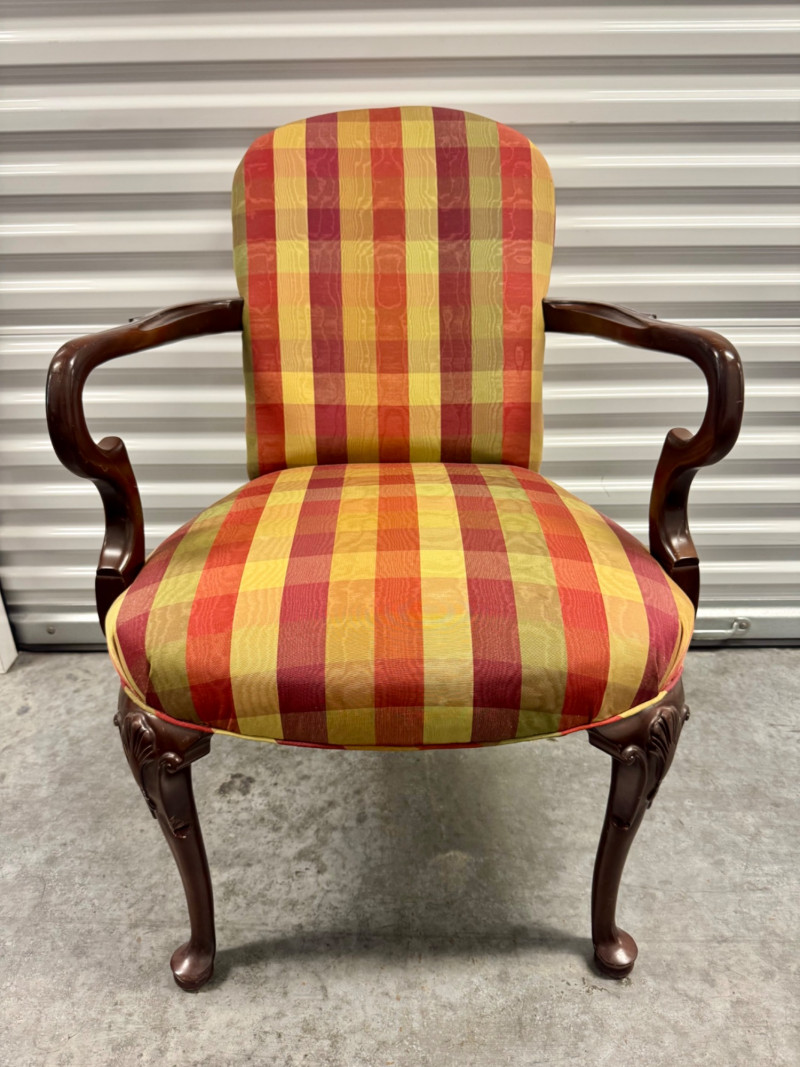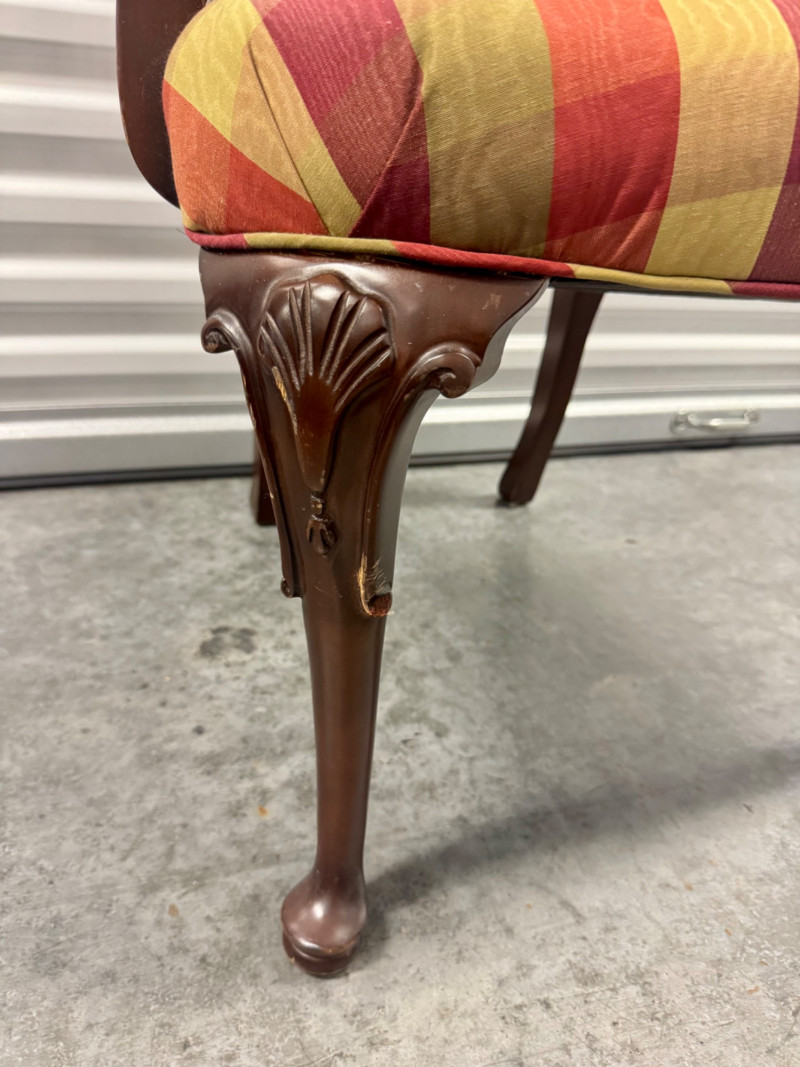 Queen Anne Style Armchair w/ Multicolor Plaid Upholstery.