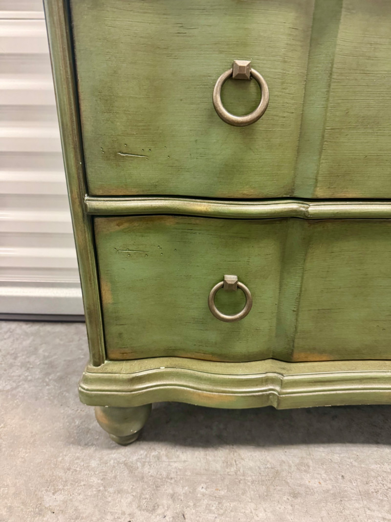 Lot # 11 - Home Meridian Hall Chest - Weathered Green Finish & Nickel Ring Pulls