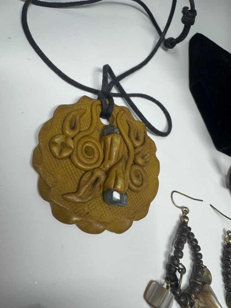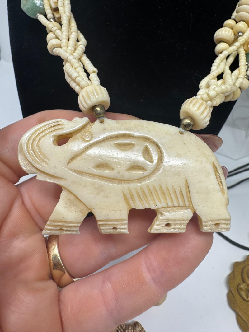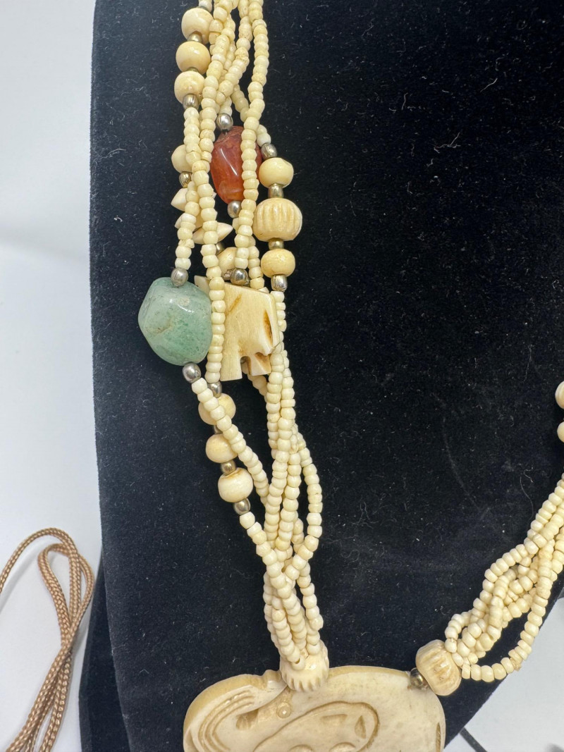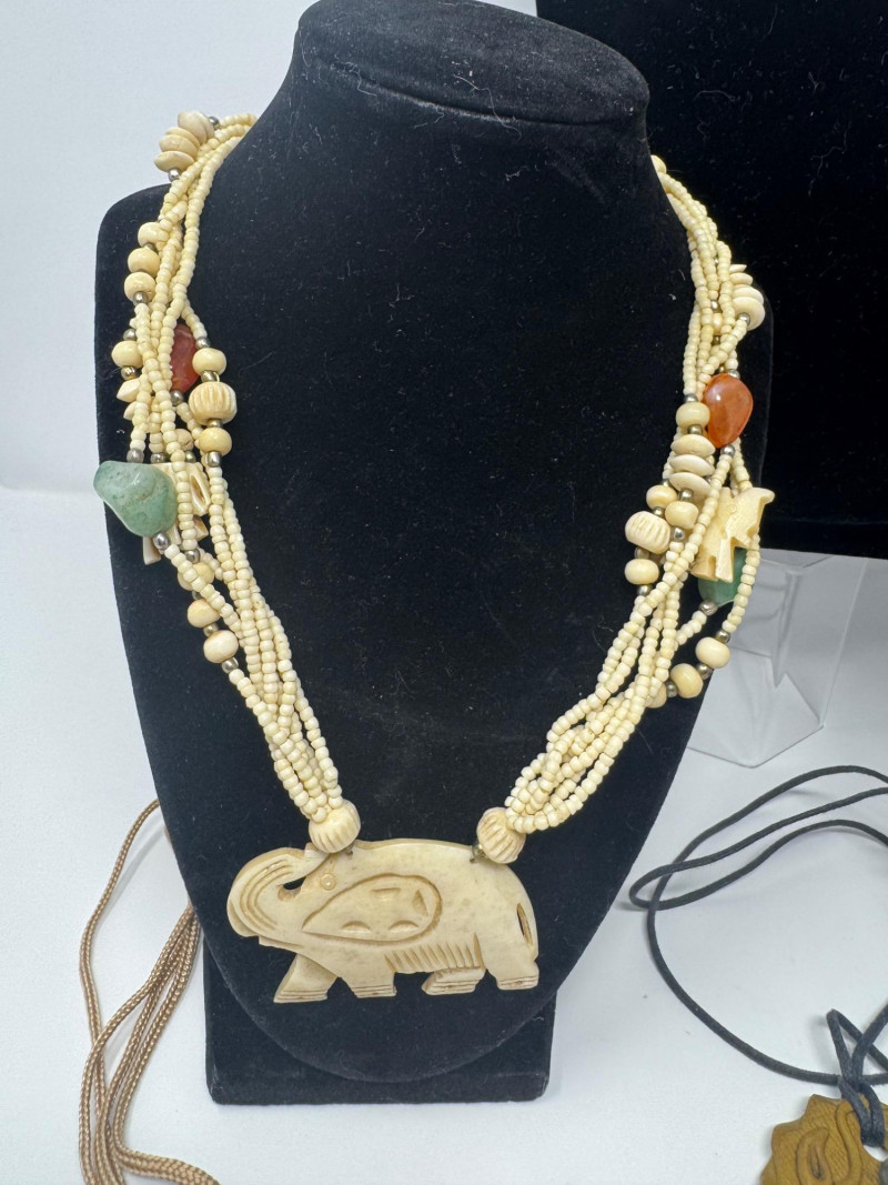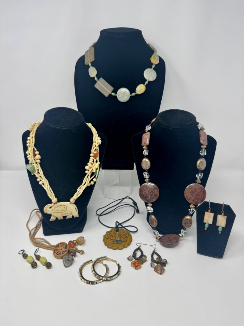 Stone & Bone Jewelry Lot – Hand-Carved Pendant, Tribal Design, & More.