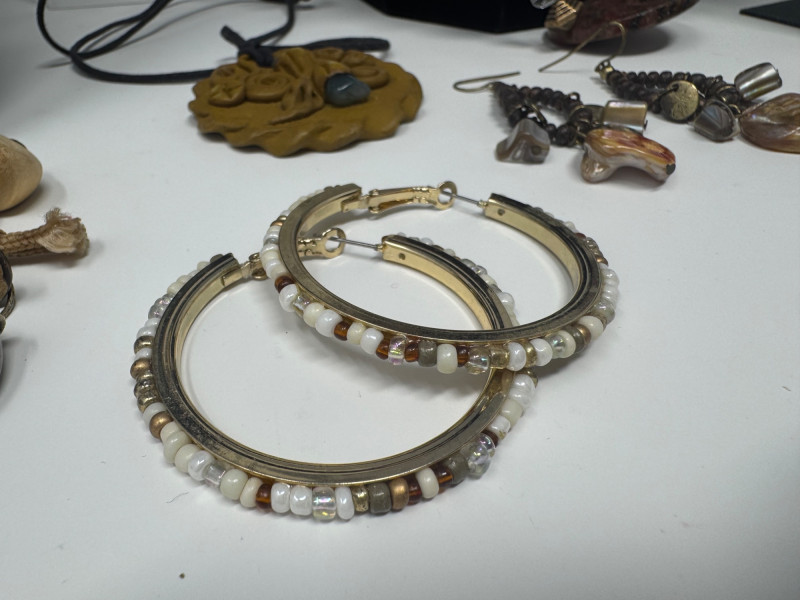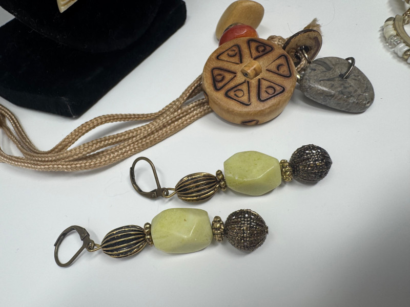 Lot # 13 - Stone & Bone Jewelry Lot – Hand-Carved Pendant, Tribal Design, & More