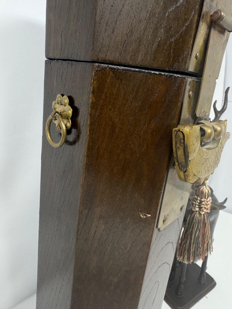 Lot # 14 - Wooden Asian Tower Wine Box & Cast Iron Reindeer Statue