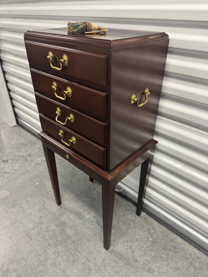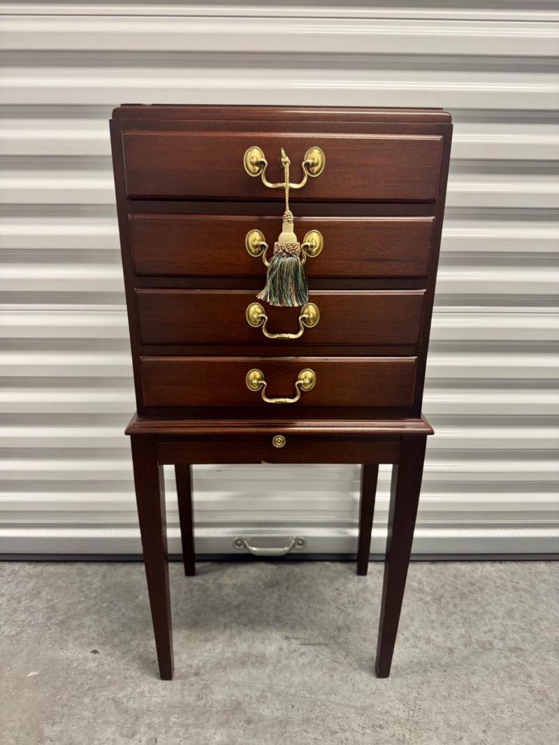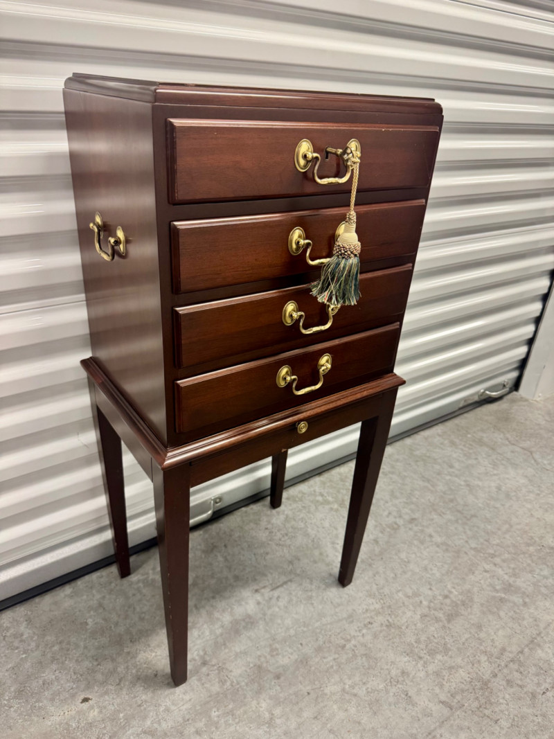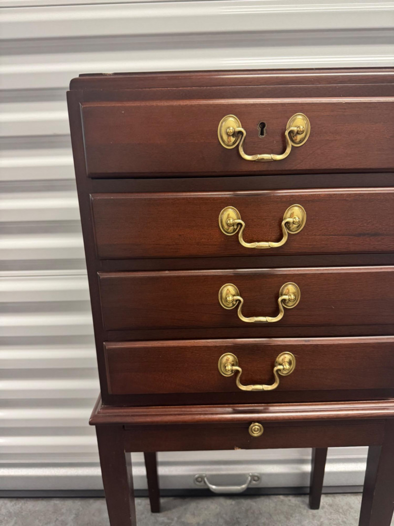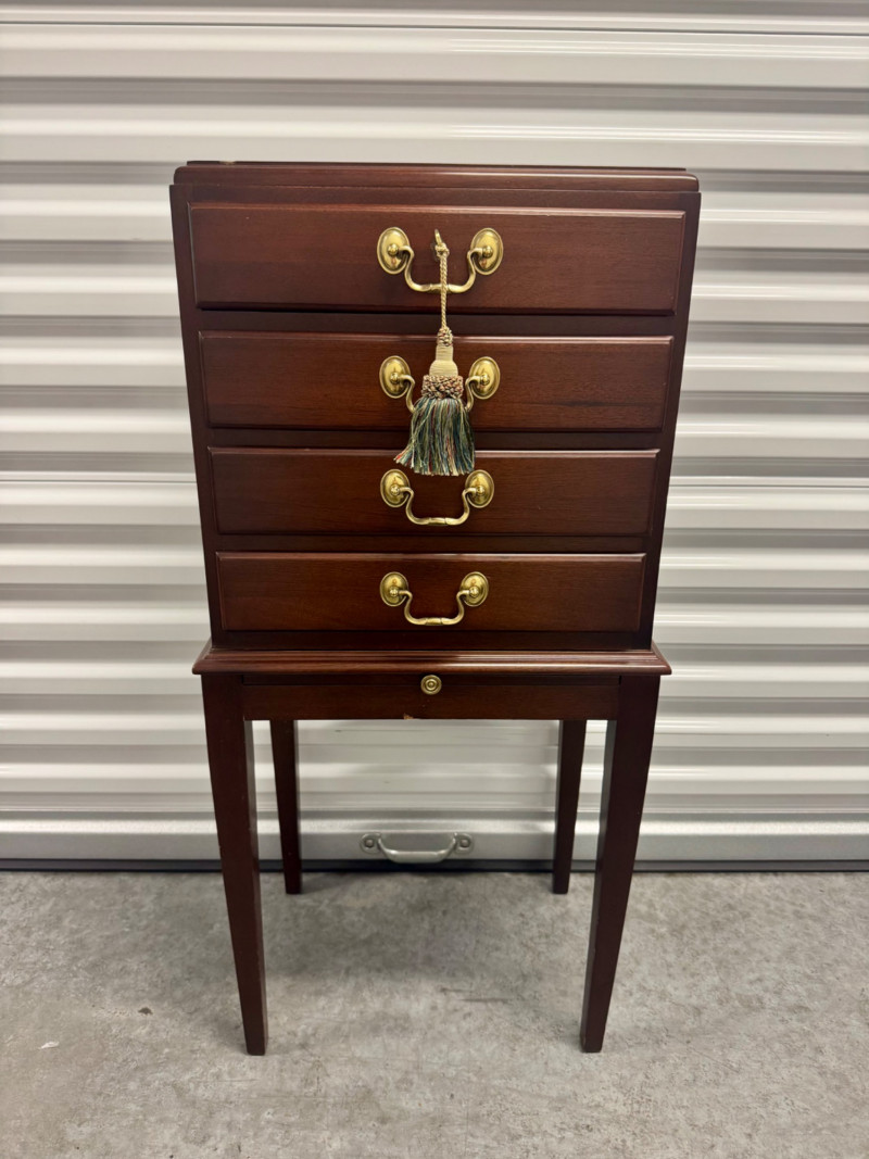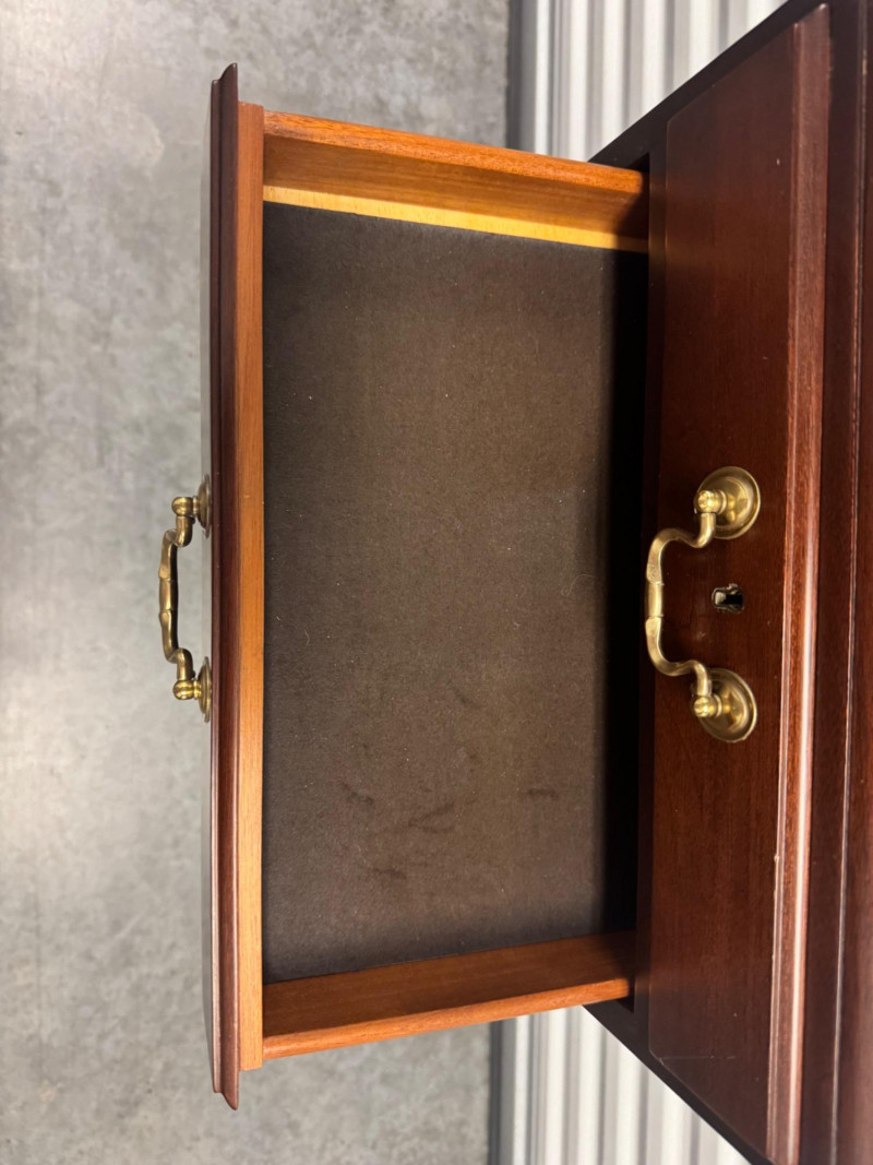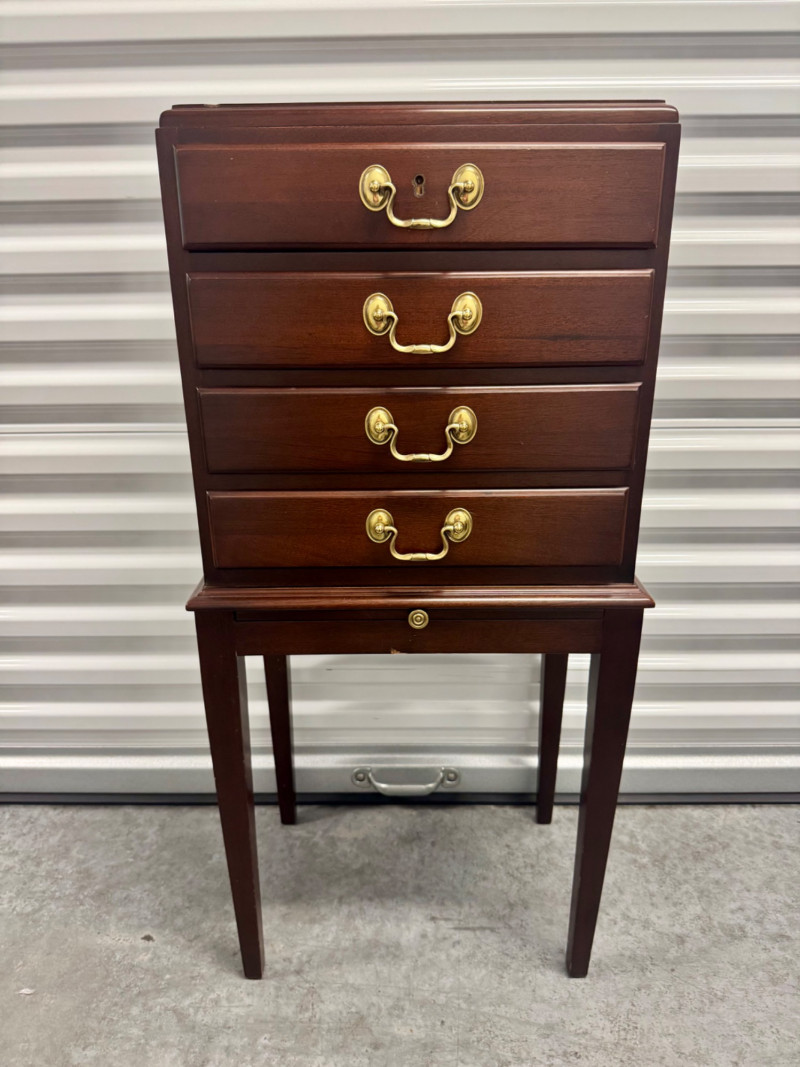 Wellington Hall Mahogany Silverware Jewelry Chest w/ Key & Brass Pulls. 16.5" Wide 12" Deep 37" Tall