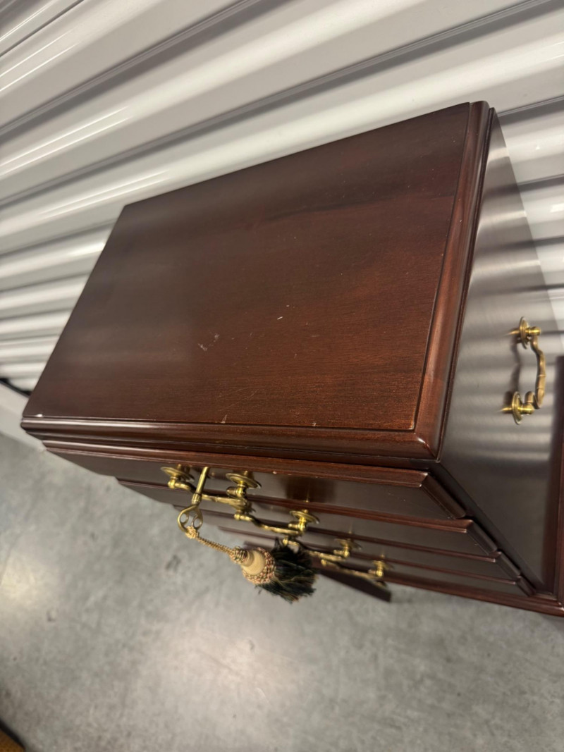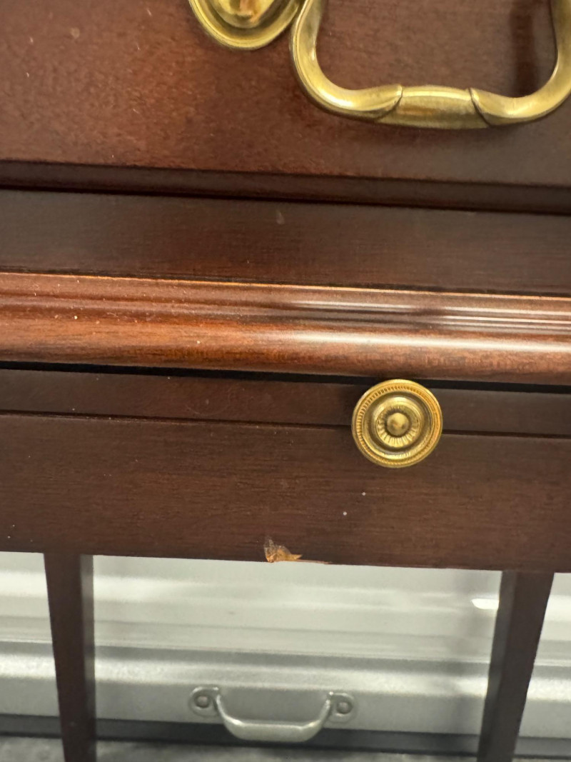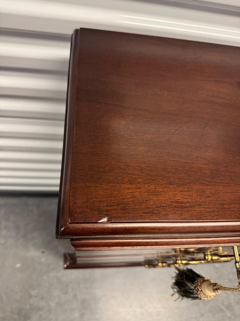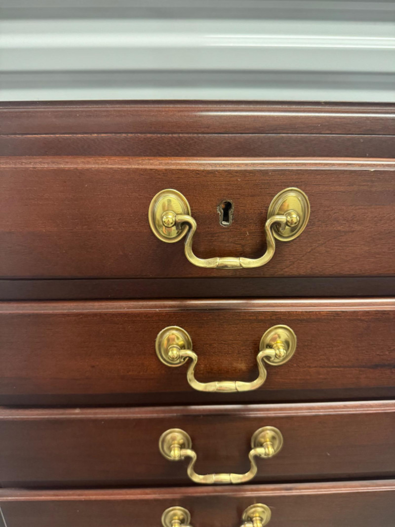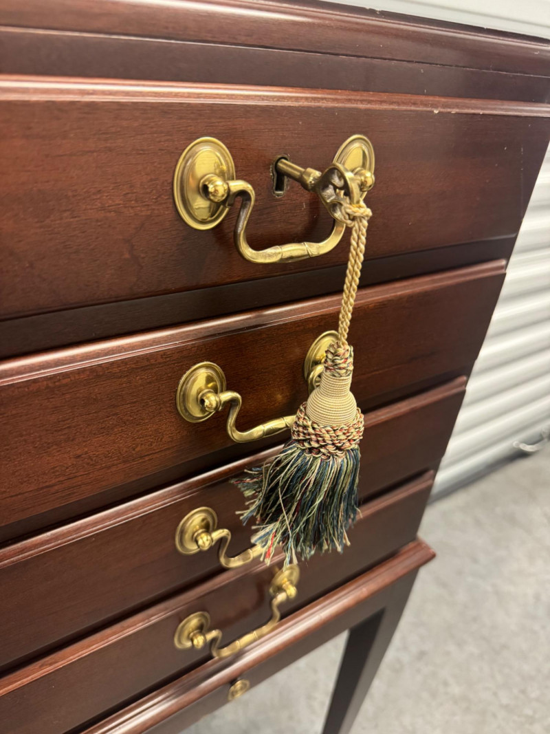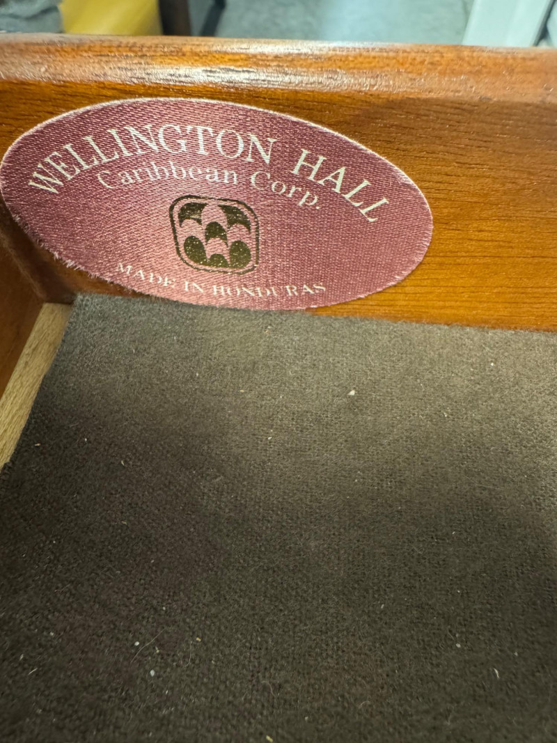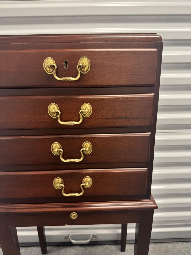 Wellington Hall Mahogany Silverware Jewelry Chest w/ Key & Brass Pulls. 16.5" Wide 12" Deep 37" Tall