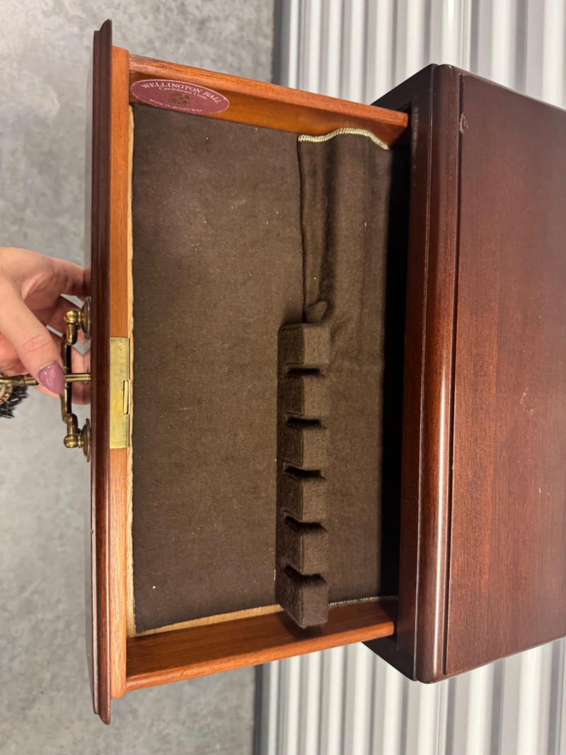 Lot # 18 - Wellington Hall Mahogany Silverware Jewelry Chest w/ Key & Brass Pulls