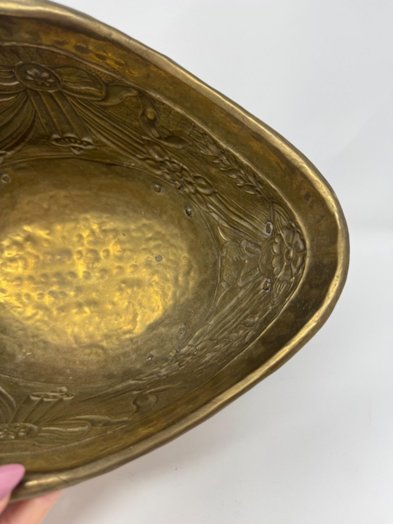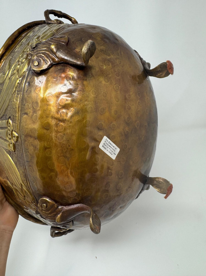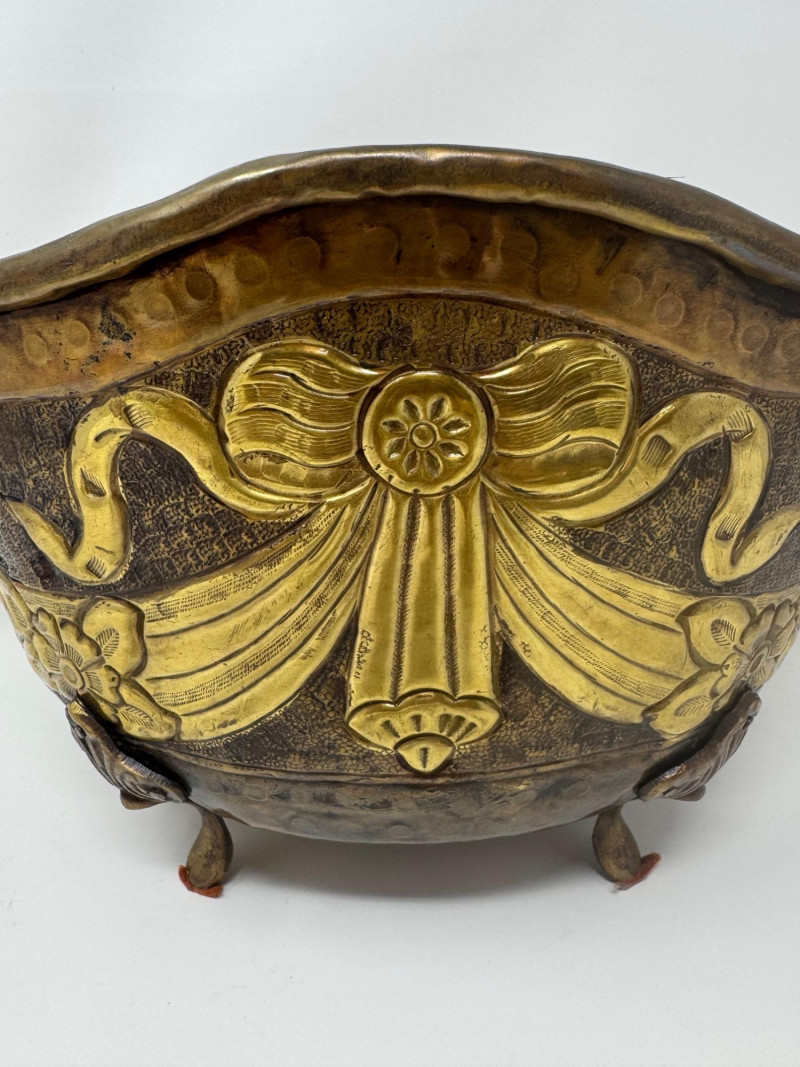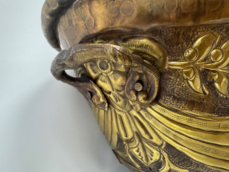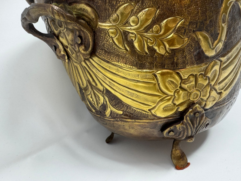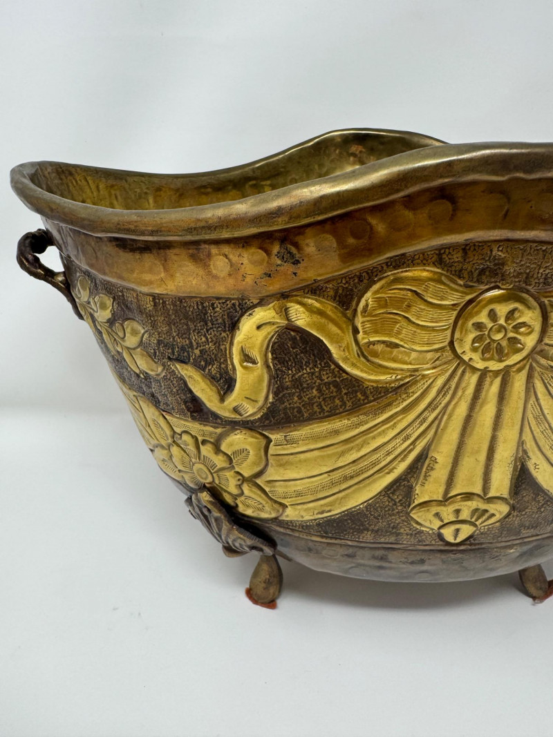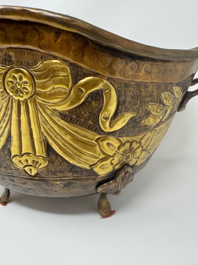Ornate Brass-Finish Jardinière Planter Bowl – Made in India. 8” Tall 13” Across