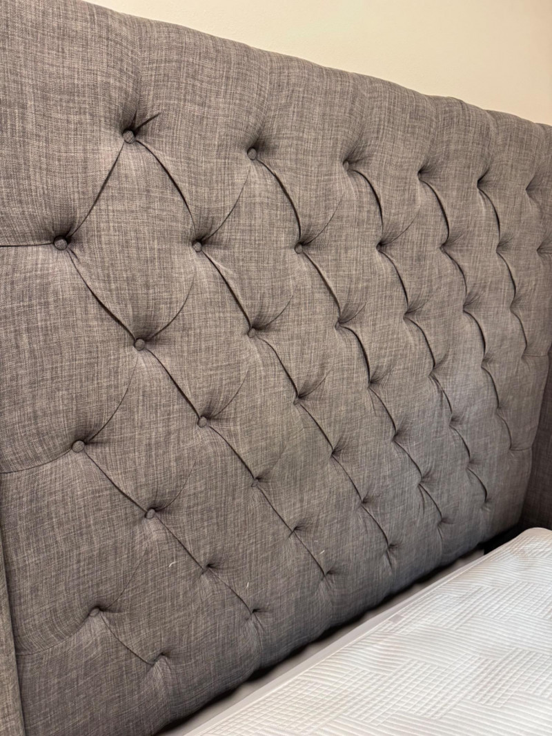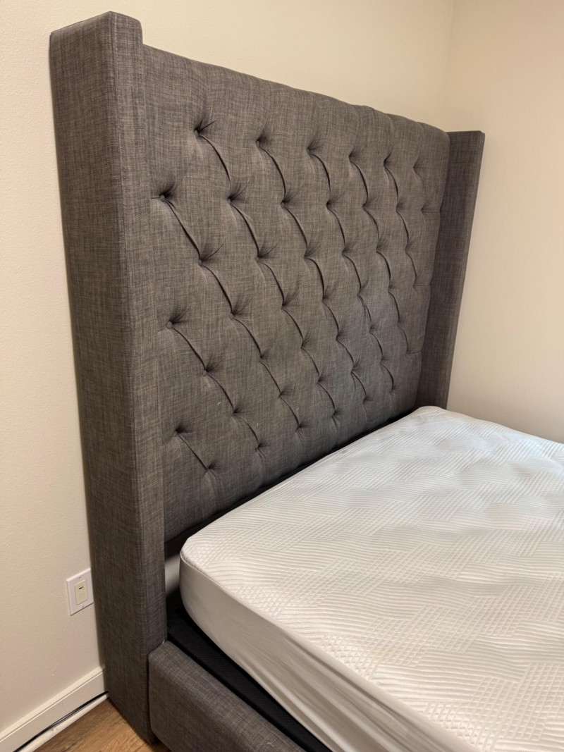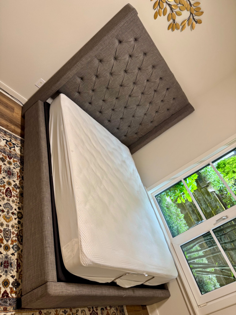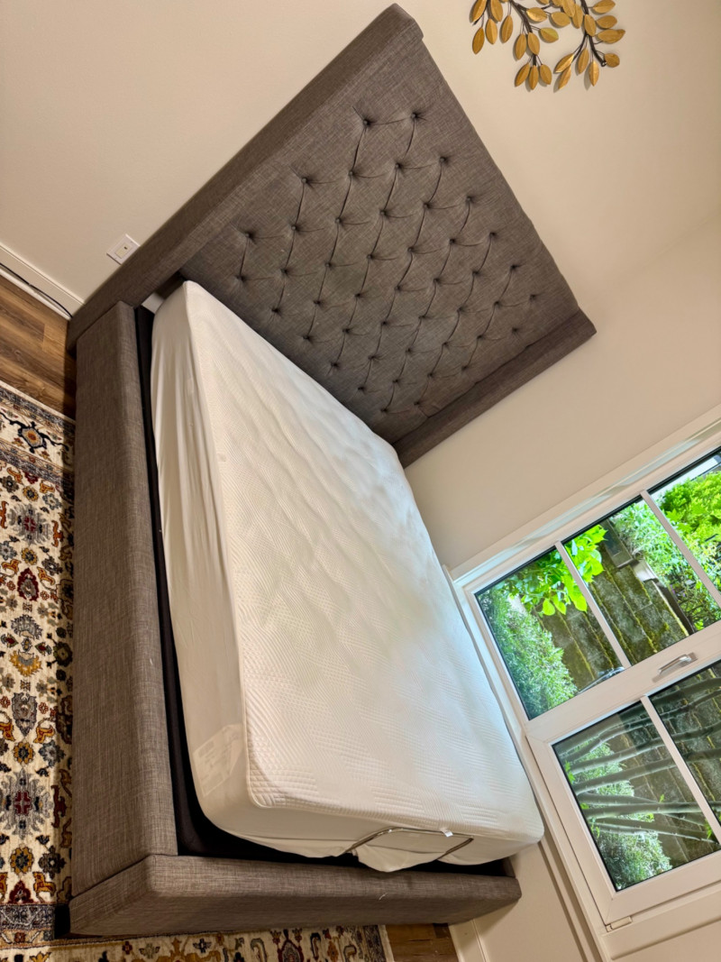 Tufted Upholstered Bed w/ Supportive Mattress & Adjustable Base. Bidding on this lot is an agreement that: (1.) You will have at least 2 capable, able bodied persons to lift and load at a minimum. (2.) You will bring a hand truck and/or any other tools needed to remove this item. If these steps are not followed your item will be forfeit and no refund given.