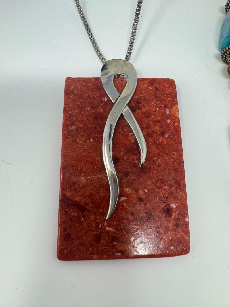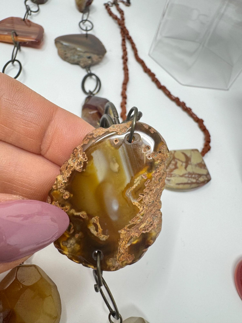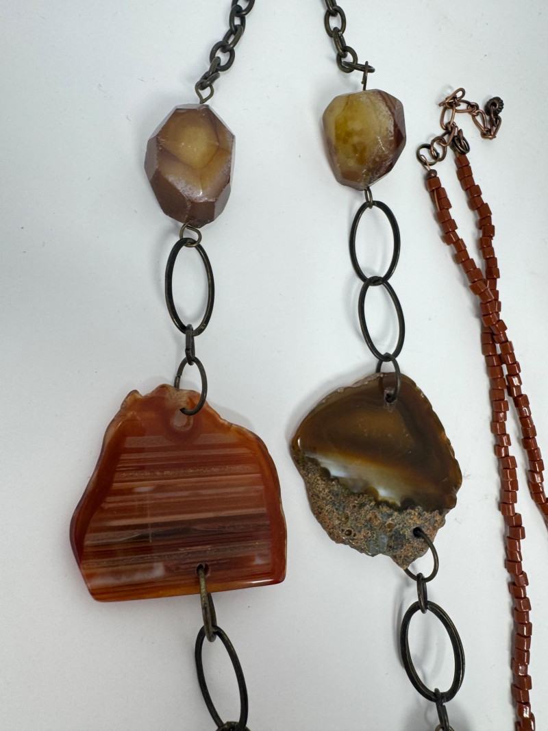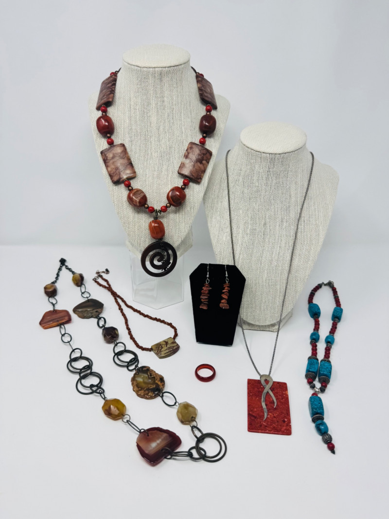 Lot # 22 - Agate & Stone Jewelry Mix – Chunky Pendants, Earrings, Sterling Chain