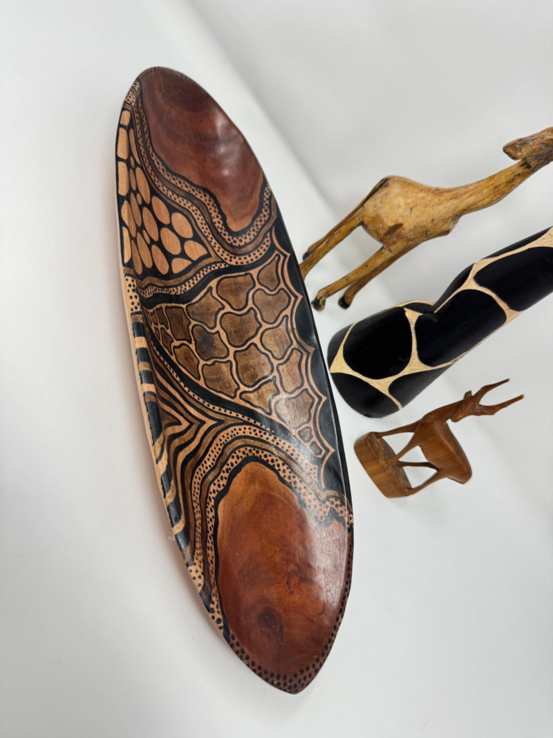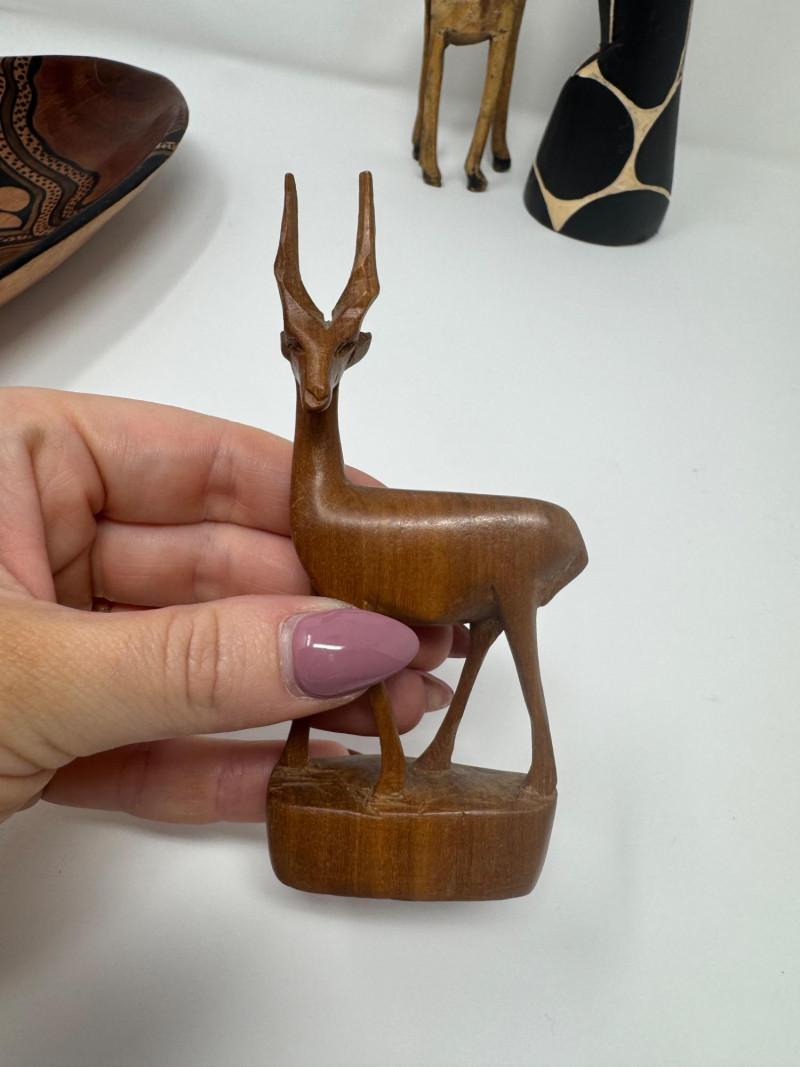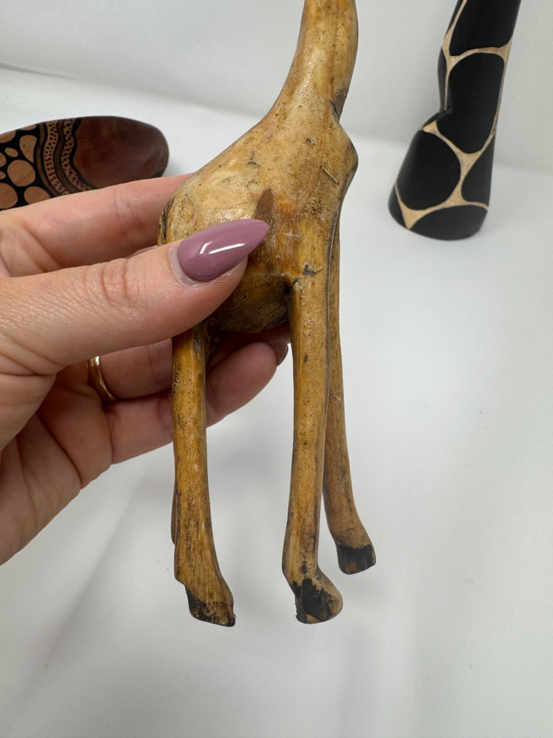 Lot # 24 - African Carved Giraffe Figures & Handpainted Wood Bowl
