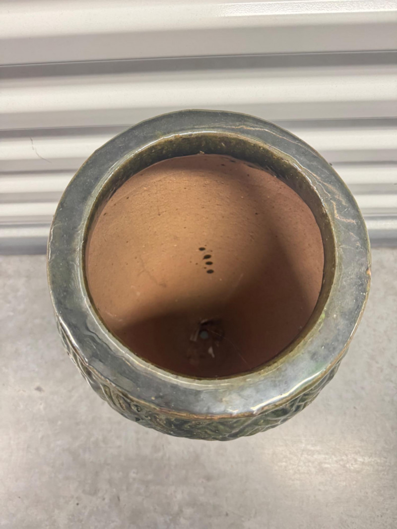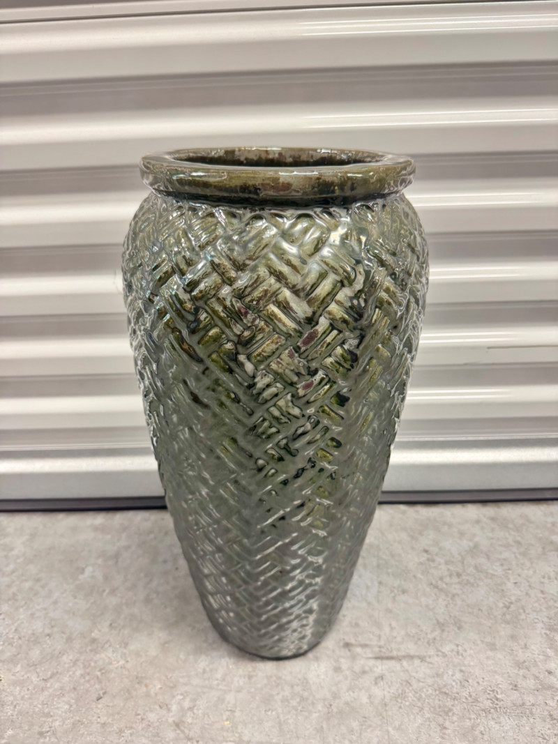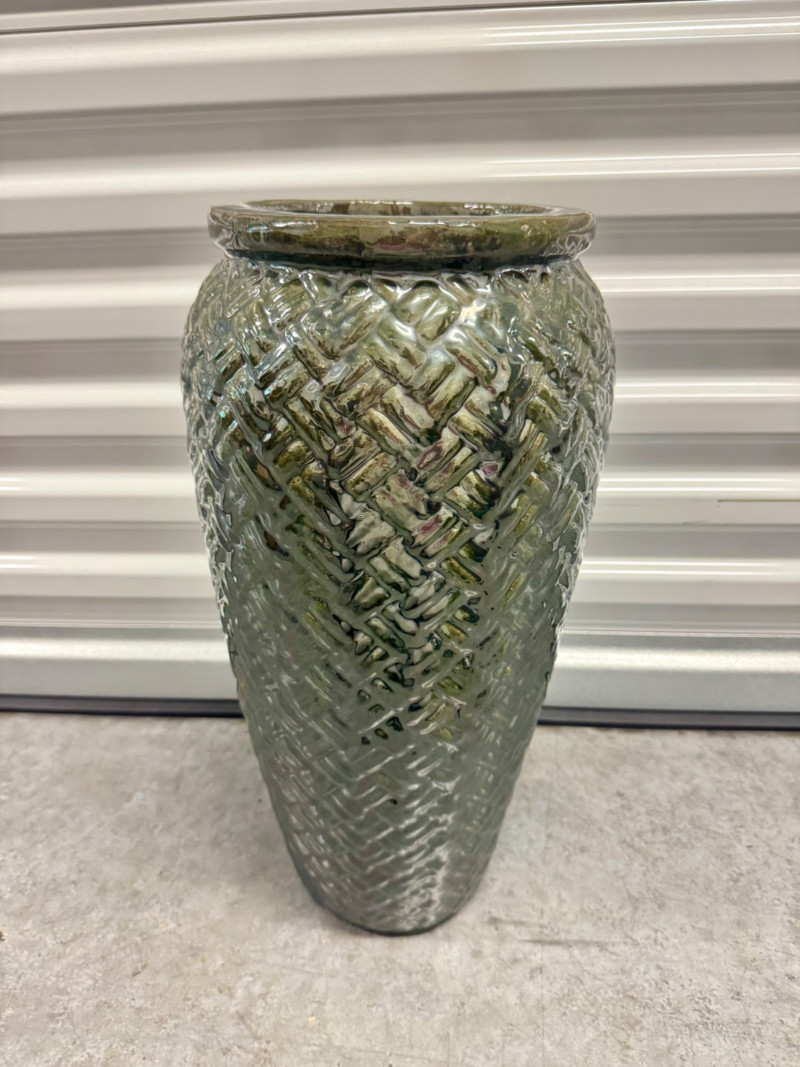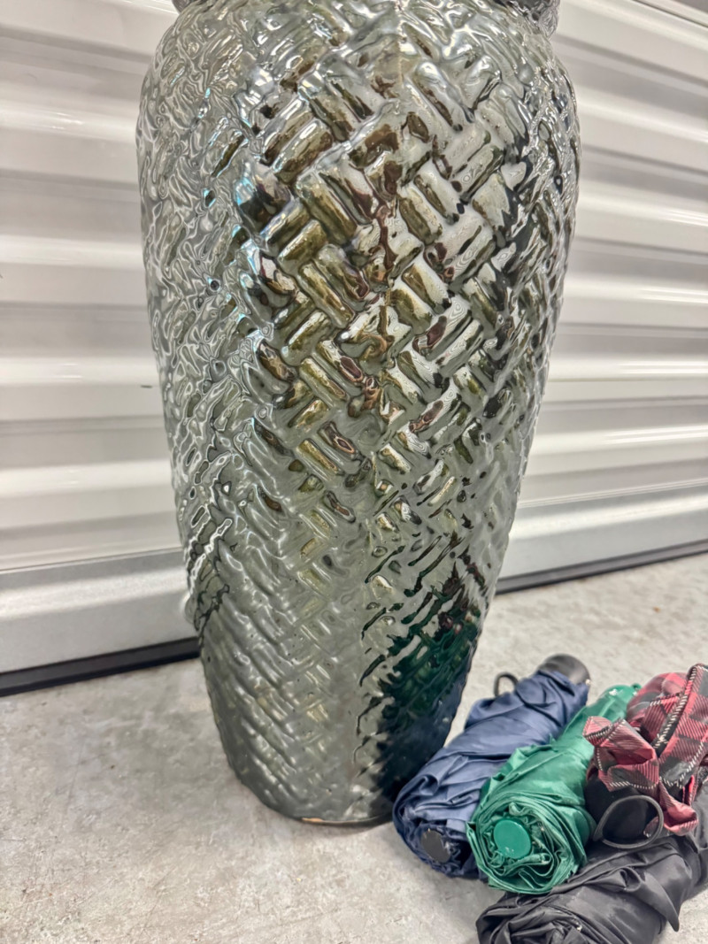 Heavy Textured Green Pottery Vase w/ 6 Extra Umbrellas. 19” Tall 9” Wide