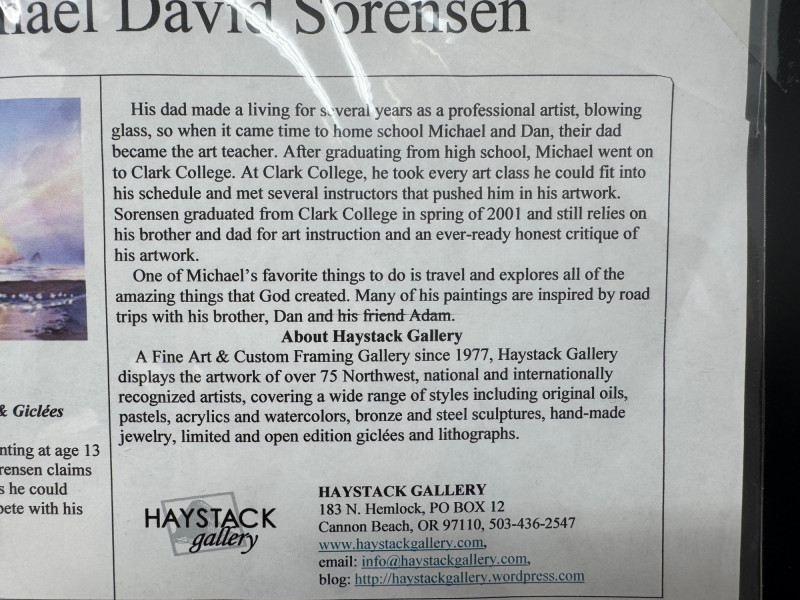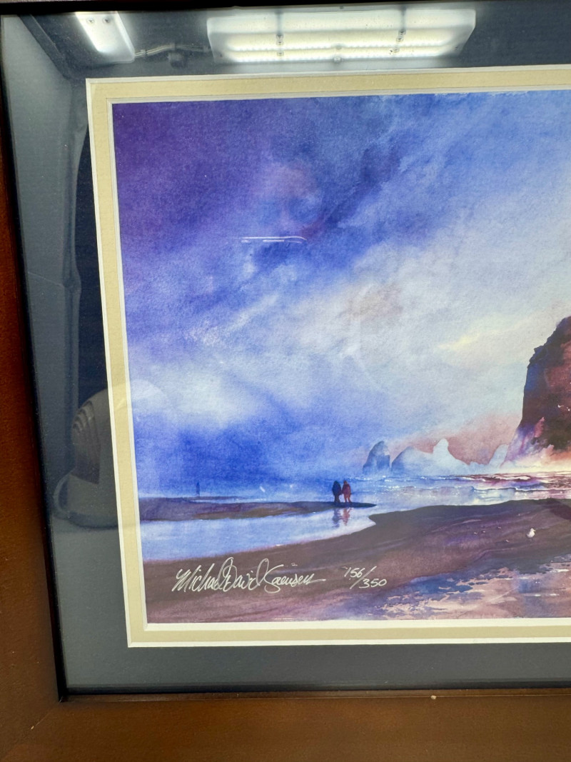 Michael David Sorensen Signed Giclée Print - Sunset On Cannon Beach. 16.5” X 14” Framed Haystack Rock Art