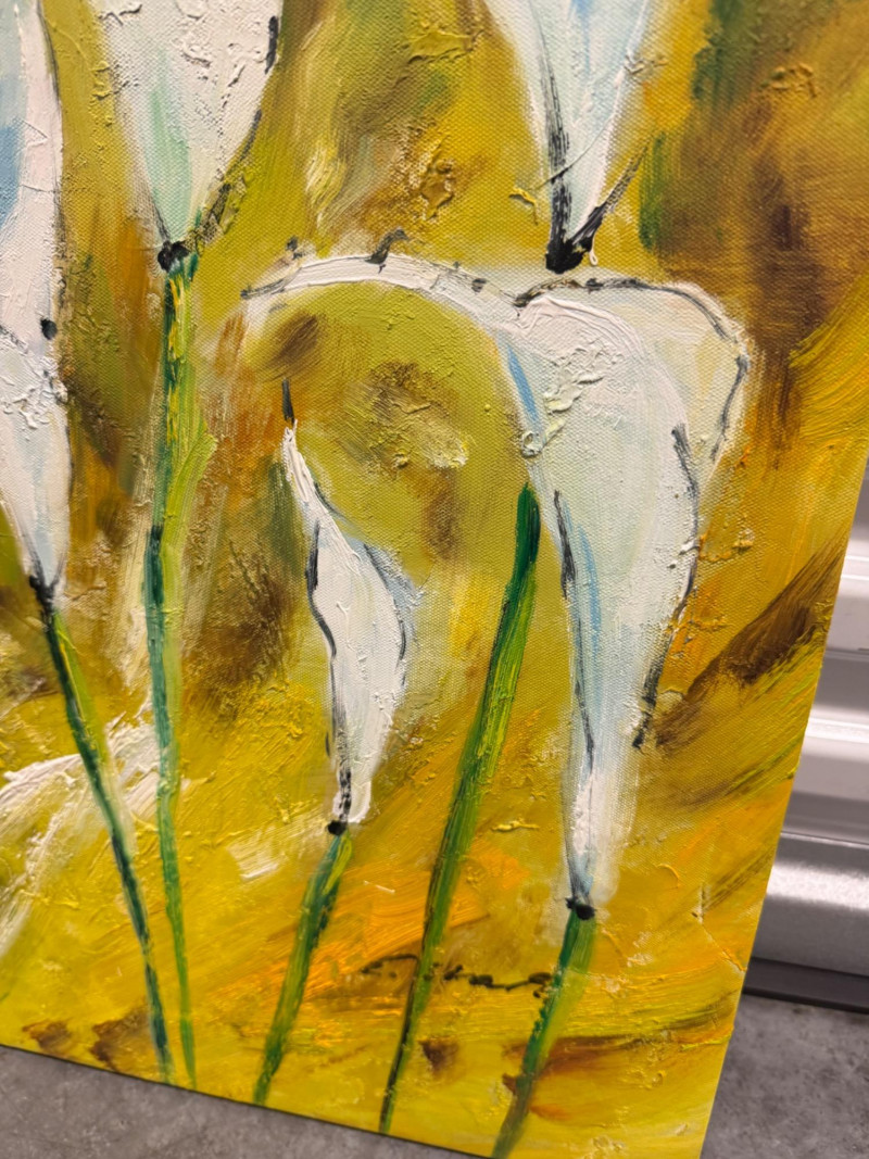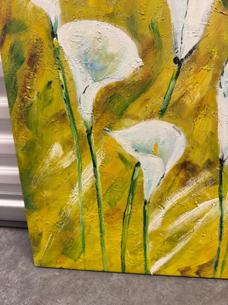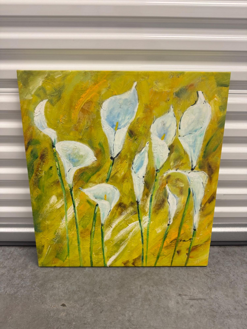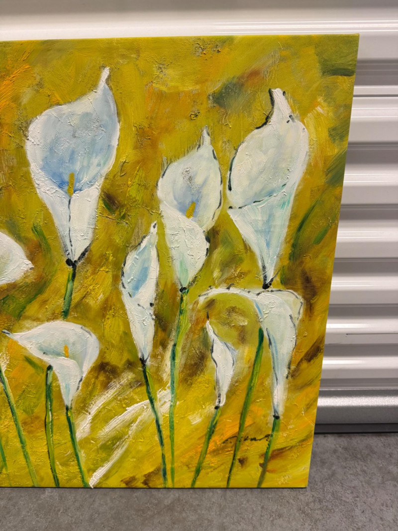 Lot # 34 - Acrylic Tulip Painting on Canvas – Bold Yellow & White Palette