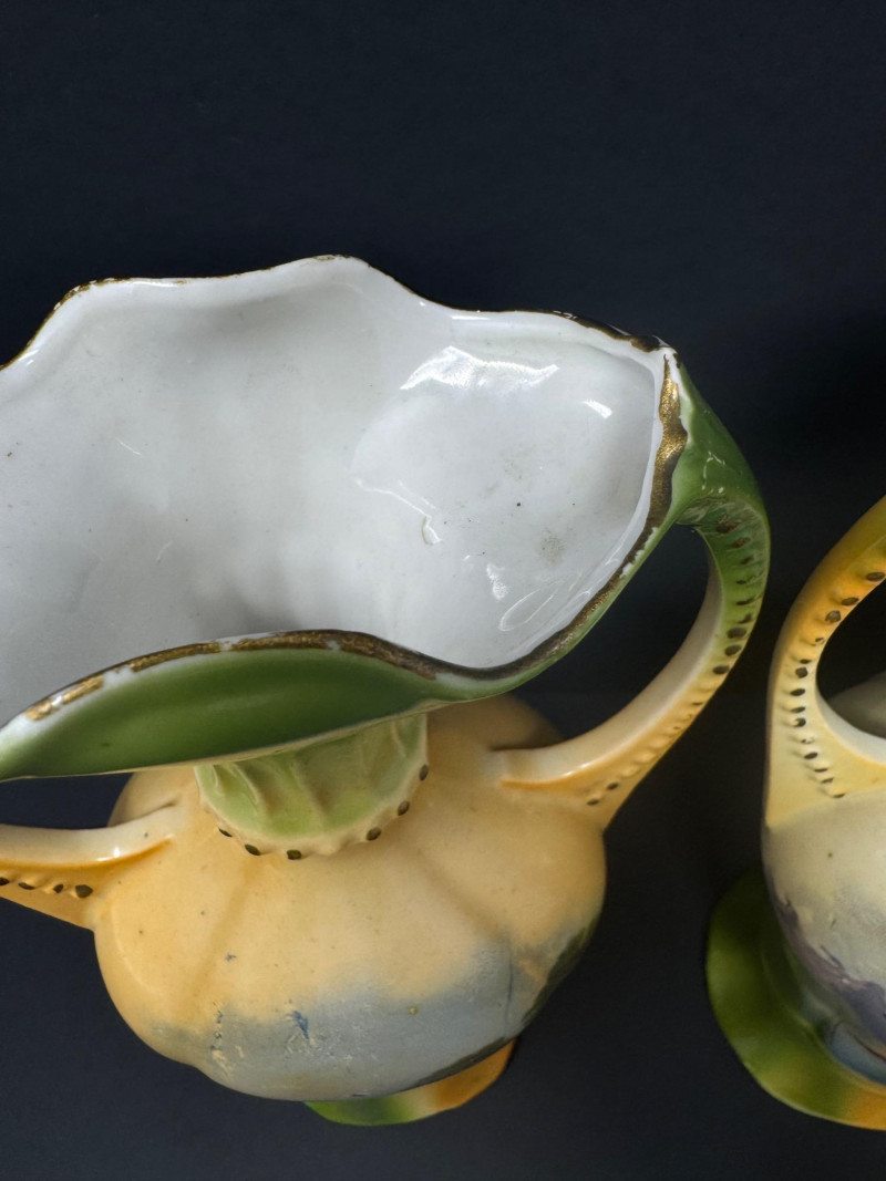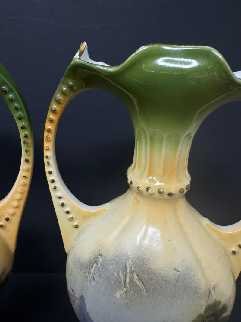 Lot # 44 - Vintage Danilo Green Double-Handled Vases – Hand Painted, Germany