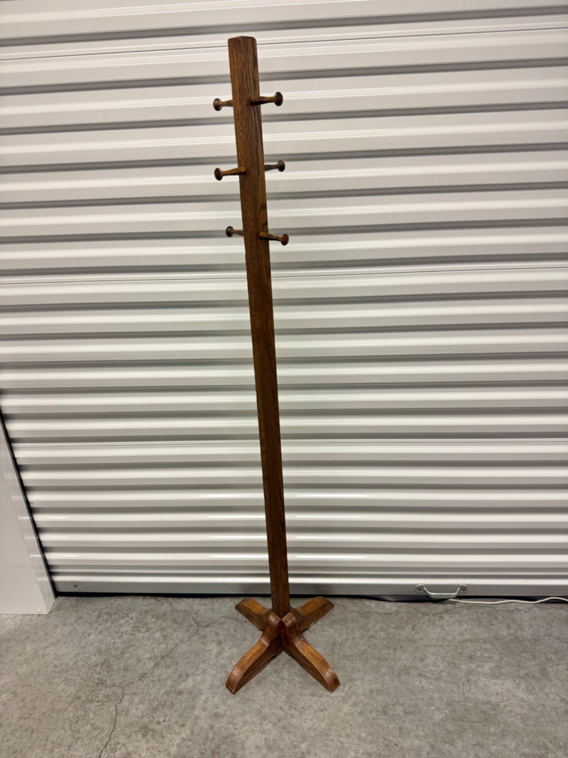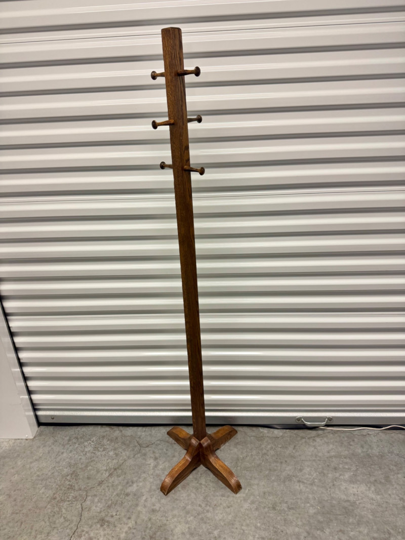 Mission-Style Solid Wood Hall Tree w/ Pegged Coat Hooks. 64” Tall