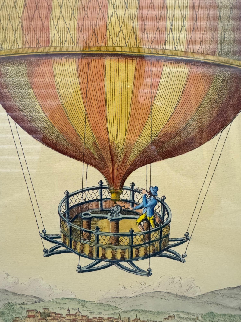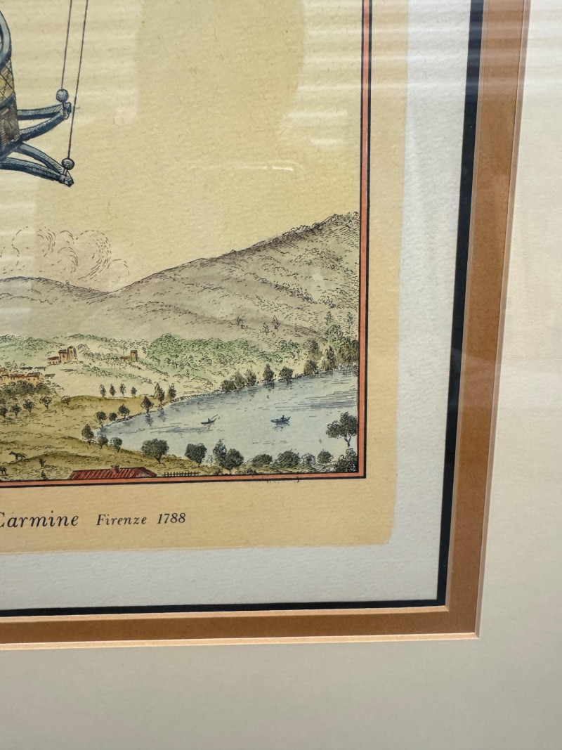 Lot # 56 - V. Cioni Framed Hot Air Balloon Print – Firenze 1788 Design