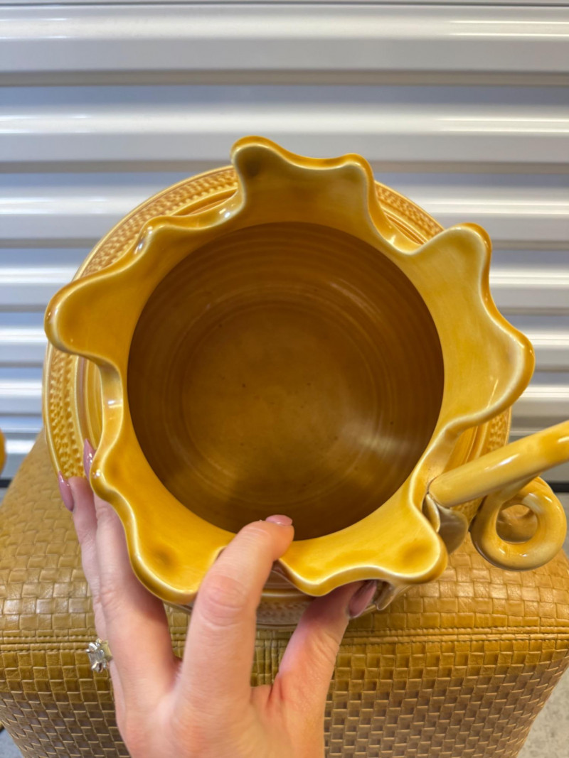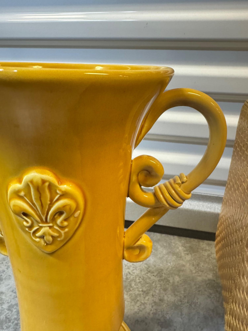 Vietri Italian Mustard Pottery & LS Industries Woven Ottoman Set.