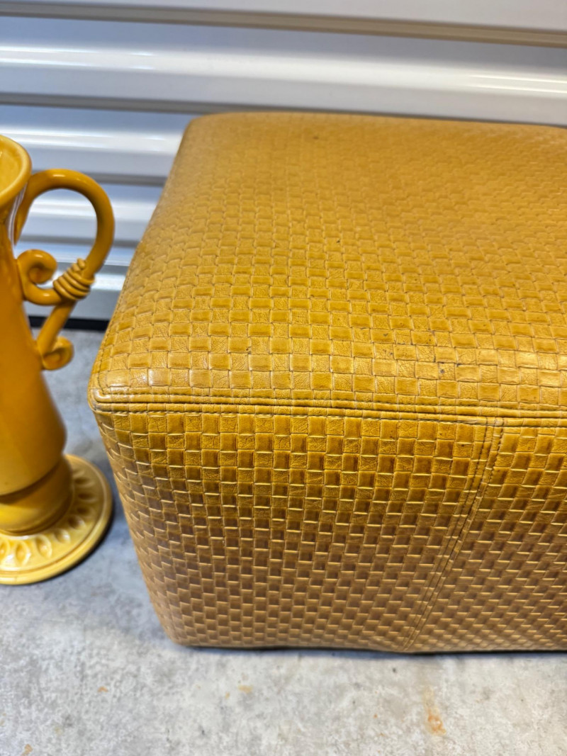 Lot # 72 - Vietri Italian Mustard Pottery & LS Industries Woven Ottoman Set