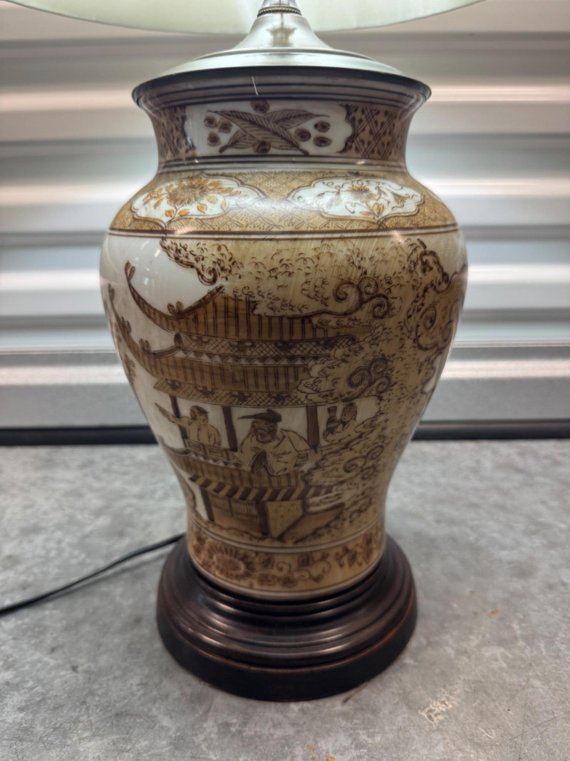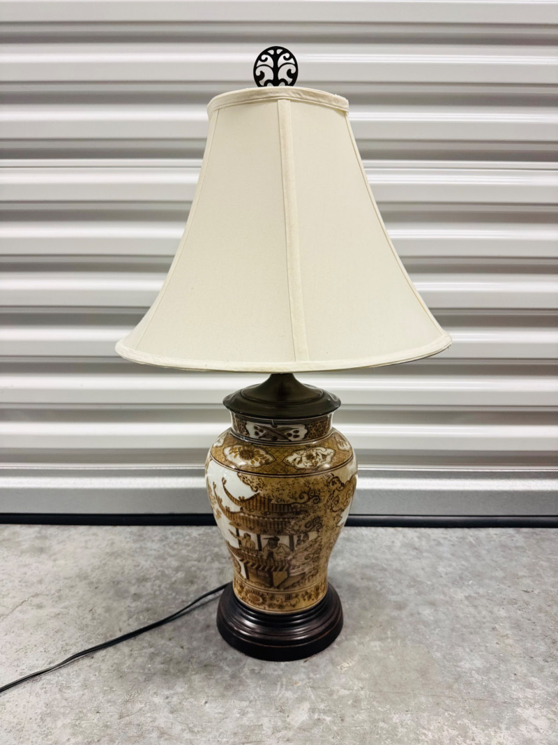 Lot # 73 - Hand-Painted Asian-Style Porcelain Lamp w/ 3 Light Settings