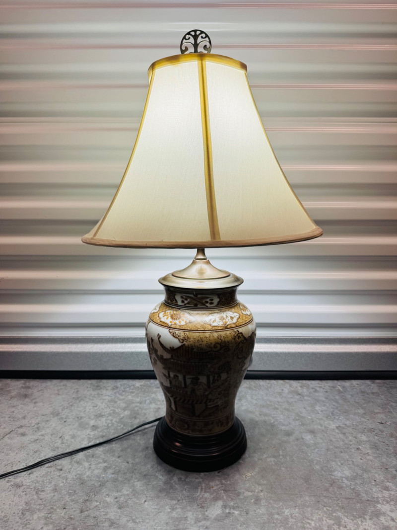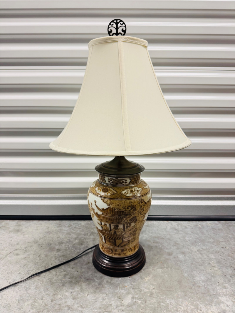Hand-Painted Asian-Style Porcelain Lamp w/ 3 Light Settings. 27" Tall