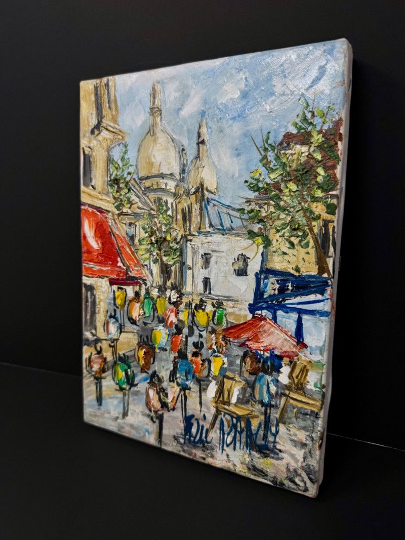 Lot # 76 - Small Signed Acrylic Painting – Paris Street Scene on Canvas