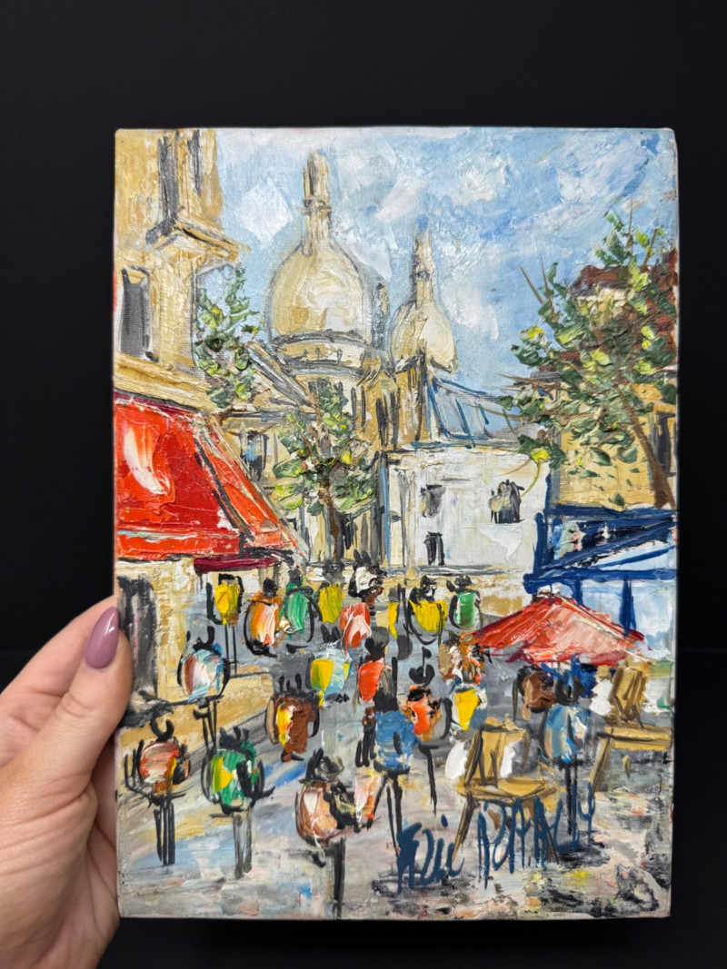 Small Signed Acrylic Painting – Paris Street Scene on Canvas. 10.5" x 7.5"
