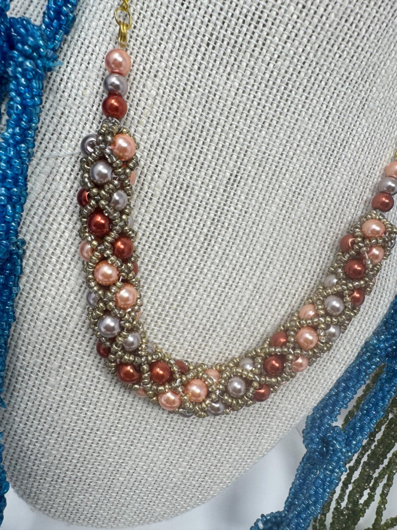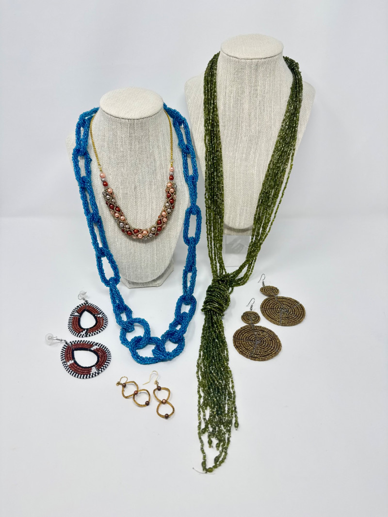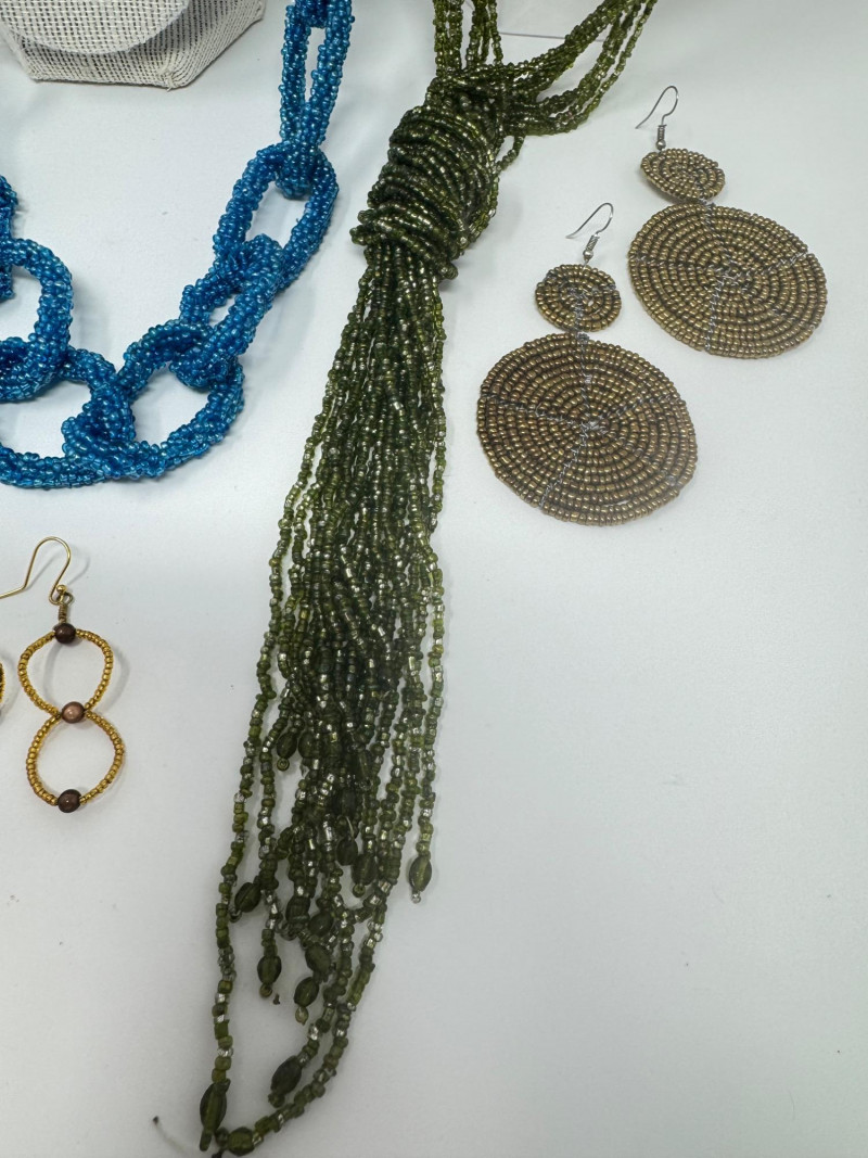 Handcrafted Textured Seed Bead Necklace & Earring Collection.