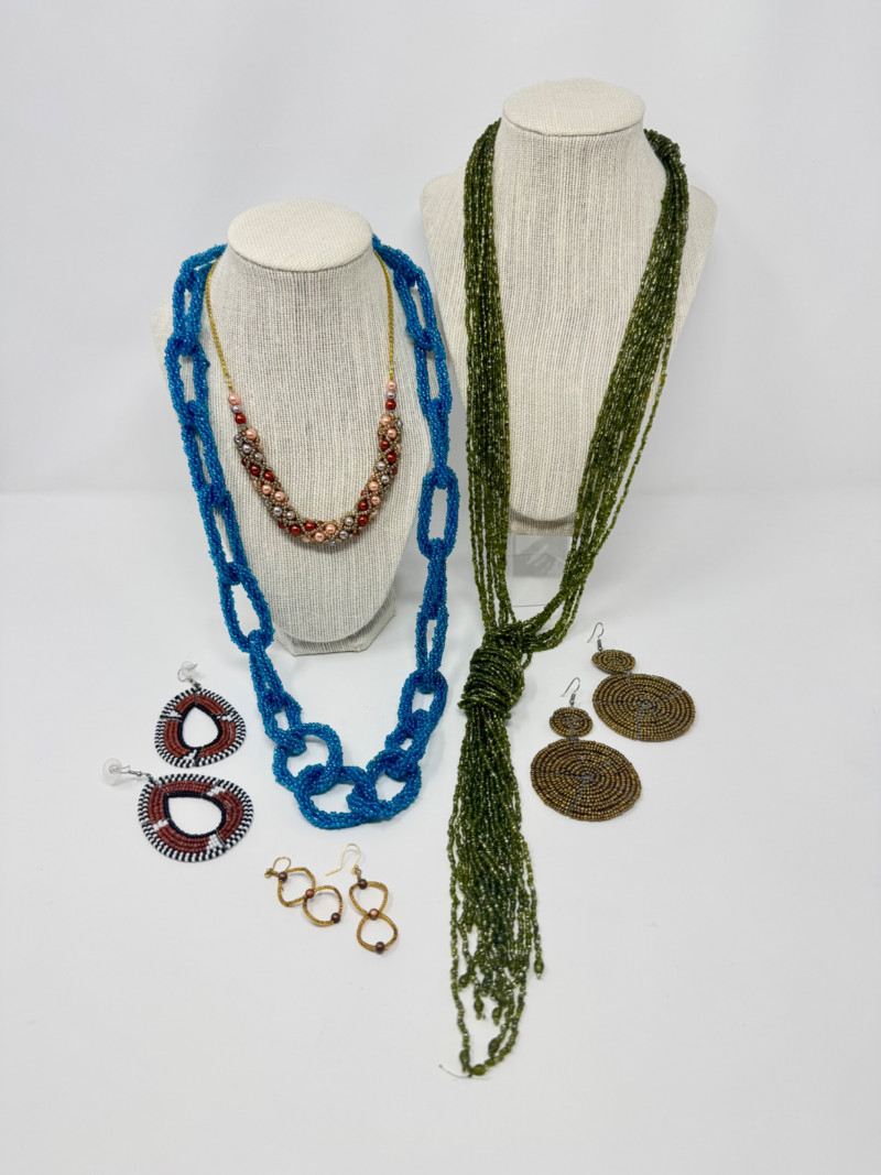 Lot # 82 - Handcrafted Textured Seed Bead Necklace & Earring Collection