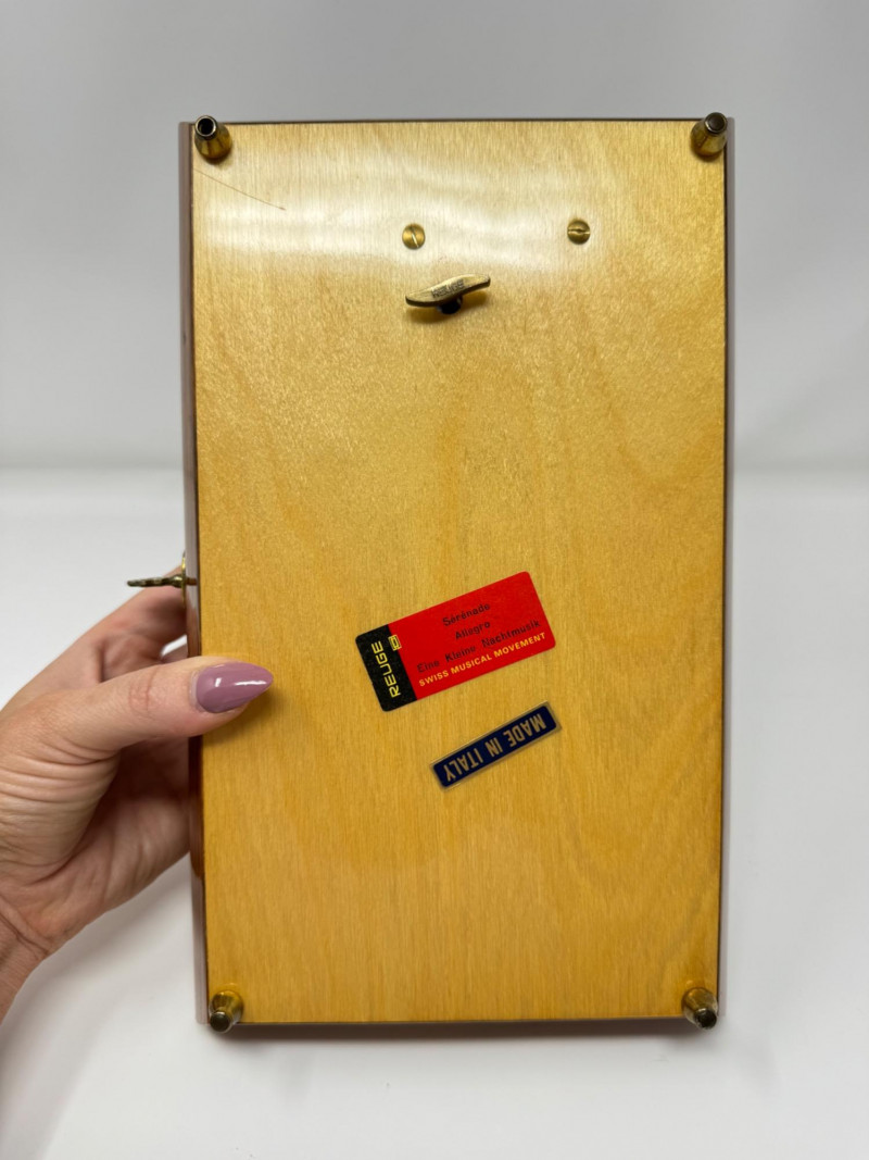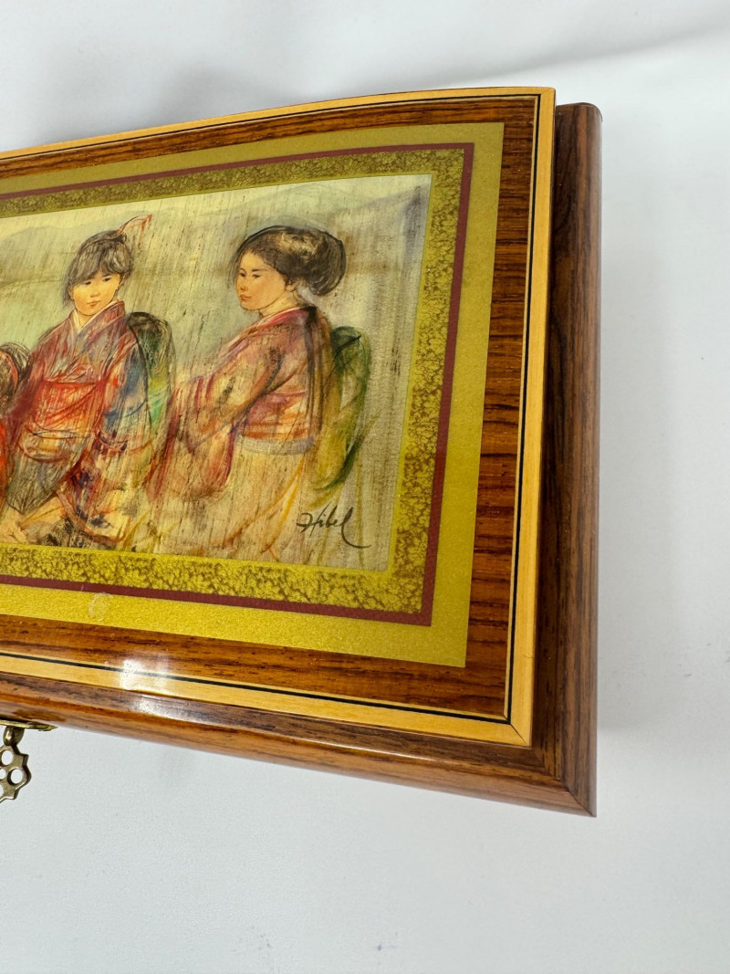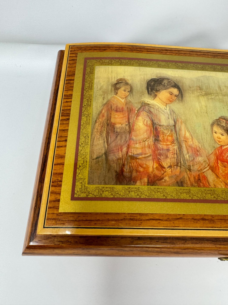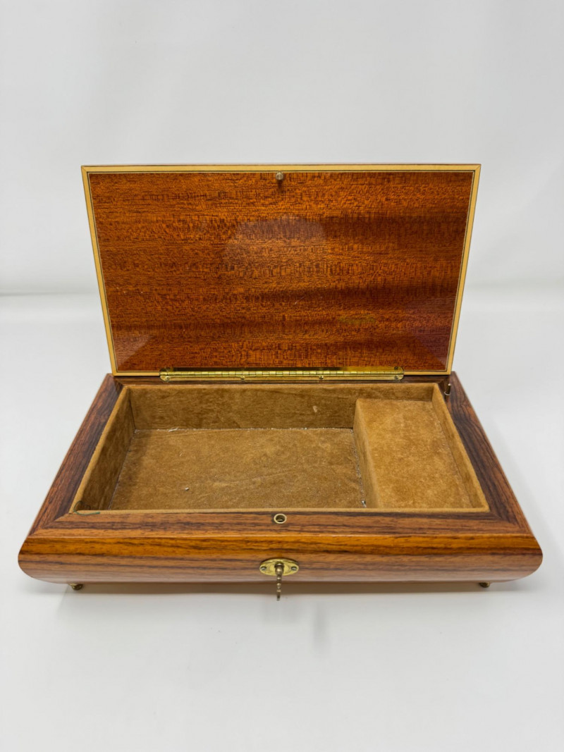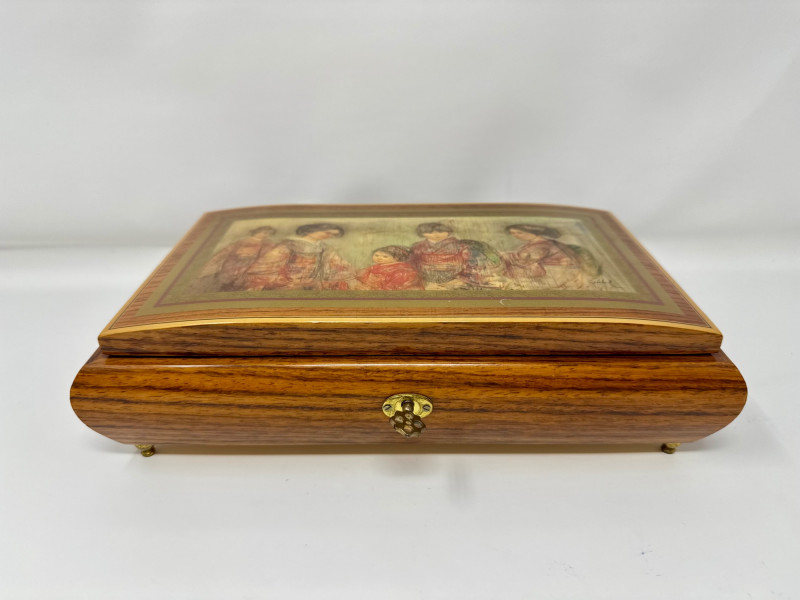 Vintage Reuge Swiss Asian-Inspired Carved Wood Musical Box.