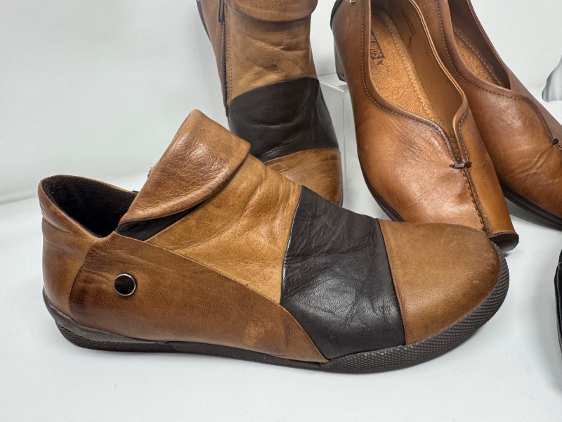 Pikolinos, Quince & Charlotte Leather Shoes – 4 Pairs. 2 pairs of Pikolinos Quince huarache-style woven sandals Charlotte leather booties with zipper