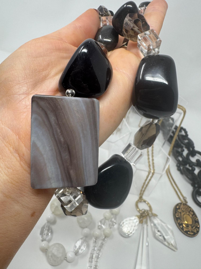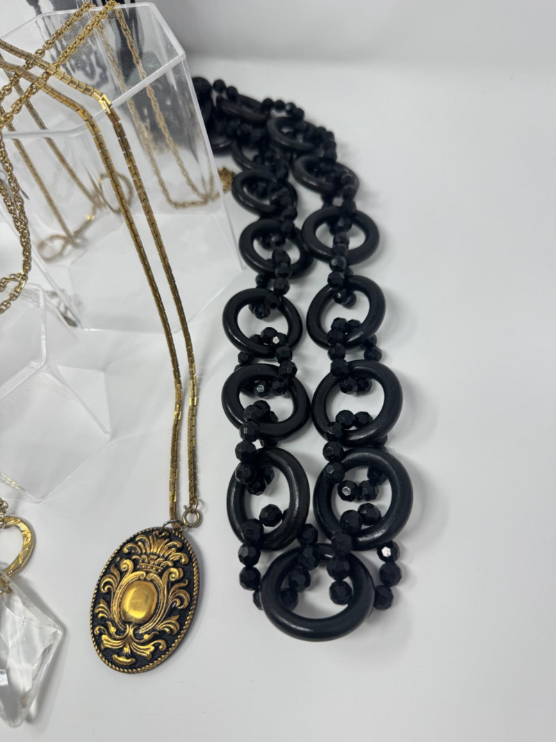 Crystal Crackle, Gilt Pendant & Bold Link Statement Necklaces. Note: Mostly plastic and some glass components.