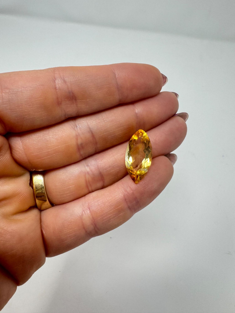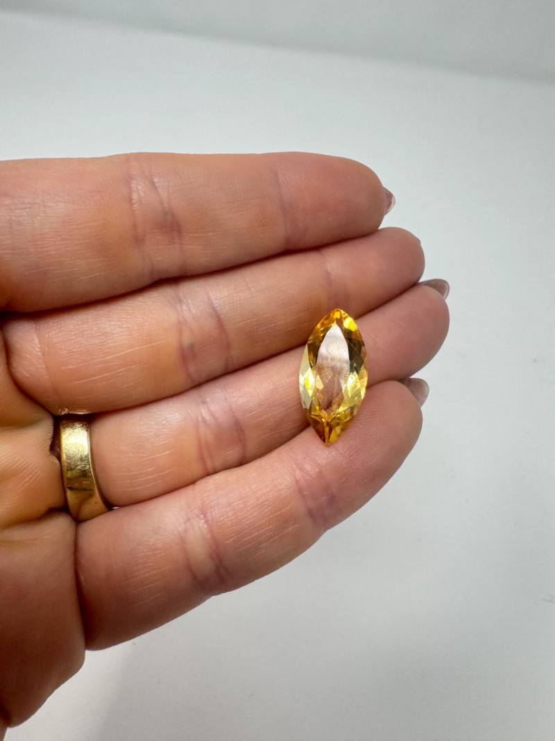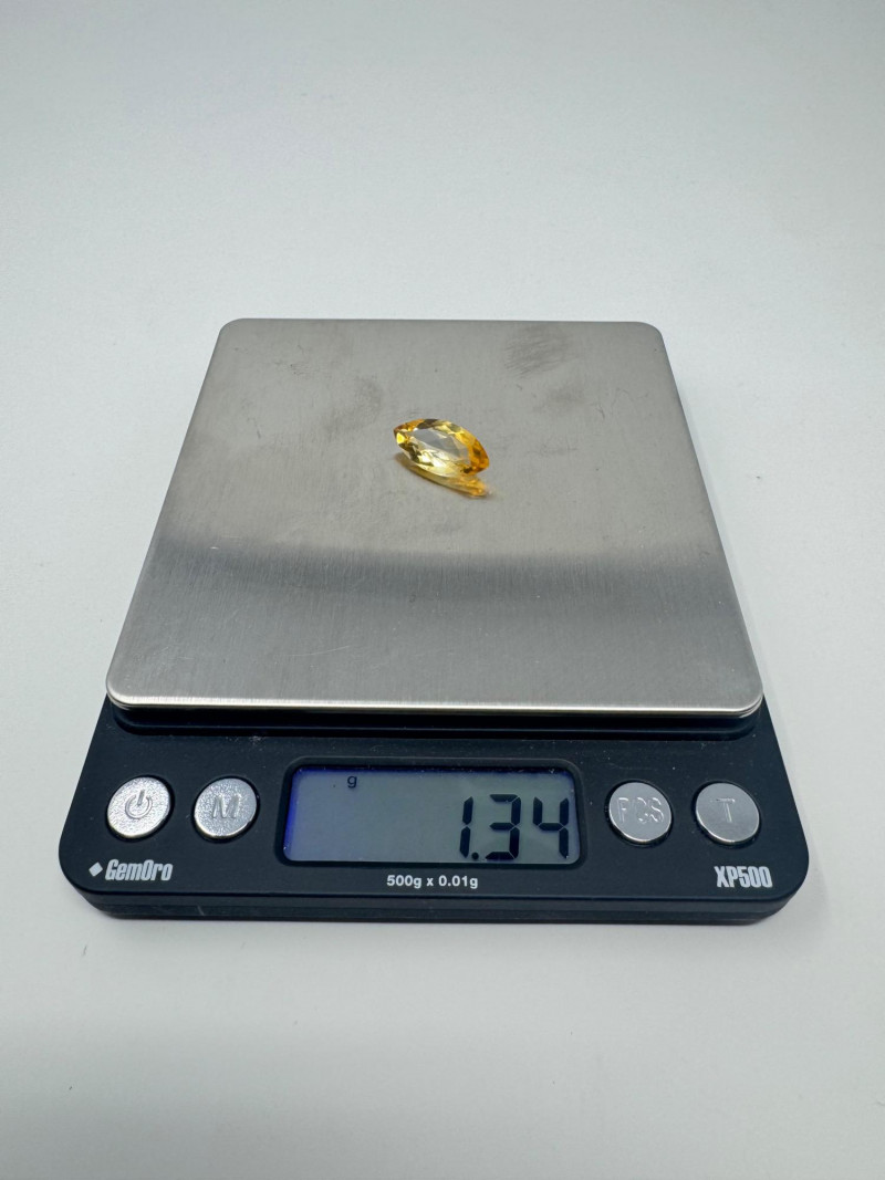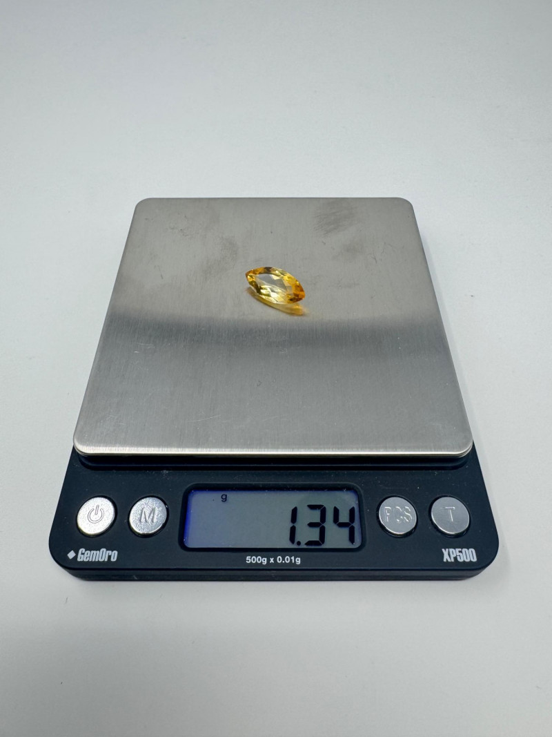 Marquise-Cut Golden Yellow Gemstone, 1.34g, 0.75" Long. Disclaimer: Stone is untested and type is unknown. Measures approx. 0.75" long with visible color variances throughout. By placing a bid, you acknowledge and agree to purchase the item "as is" without any guarantees regarding metal quality, content, or purity. Refunds will not be issued based on these factors.