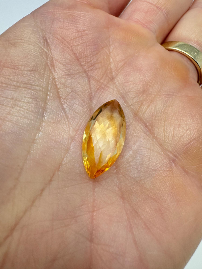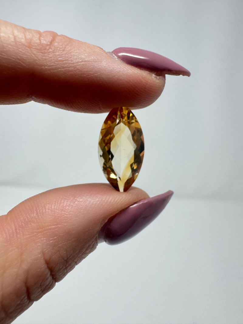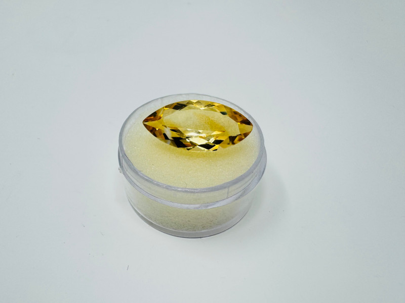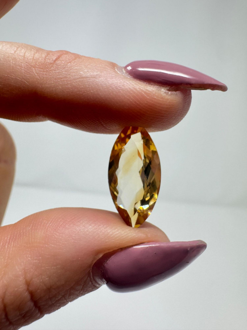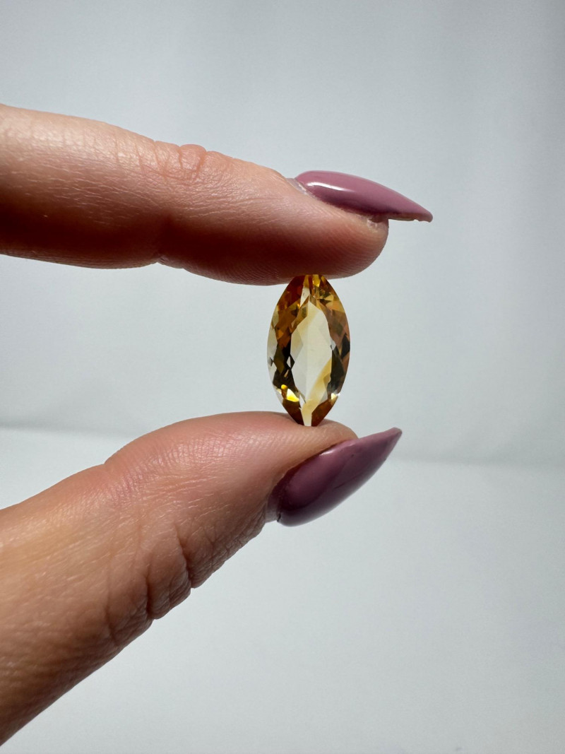 Marquise-Cut Golden Yellow Gemstone, 1.34g, 0.75" Long. Disclaimer: Stone is untested and type is unknown. Measures approx. 0.75" long with visible color variances throughout. By placing a bid, you acknowledge and agree to purchase the item "as is" without any guarantees regarding metal quality, content, or purity. Refunds will not be issued based on these factors.