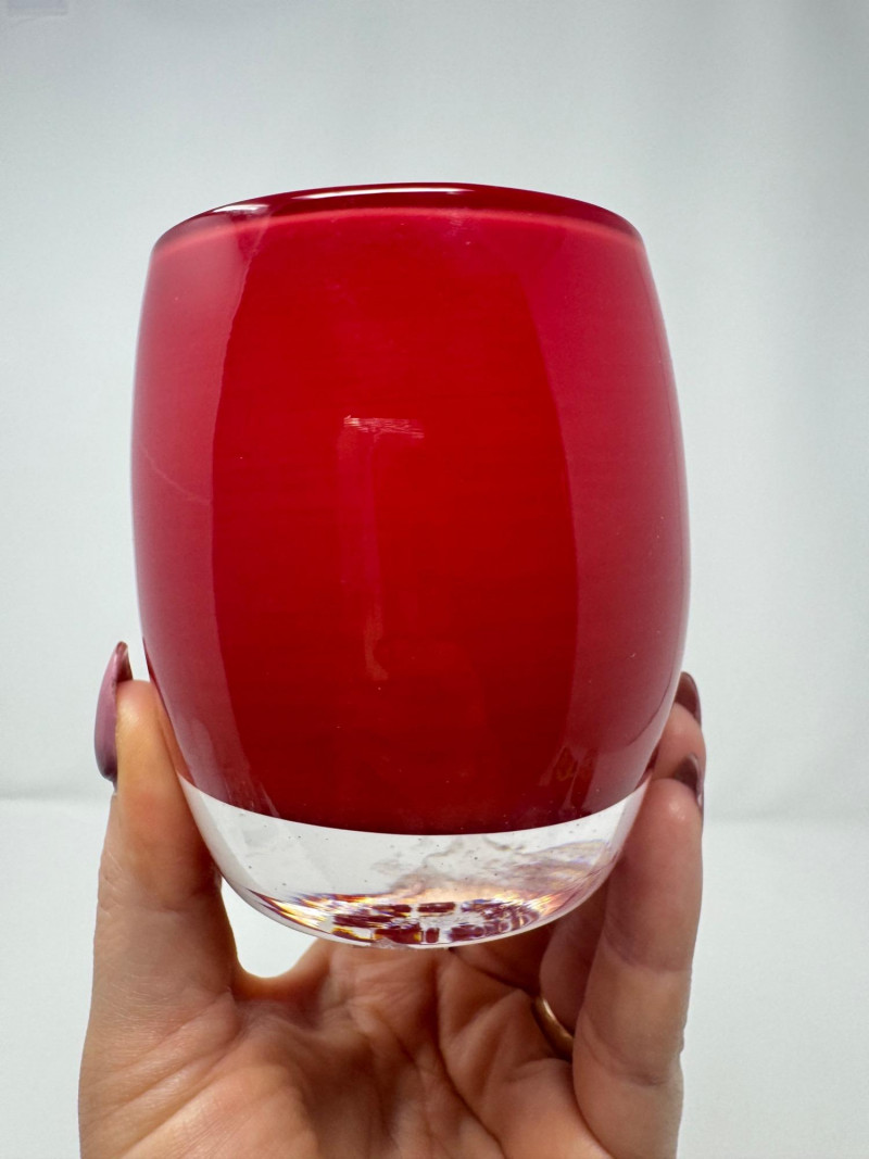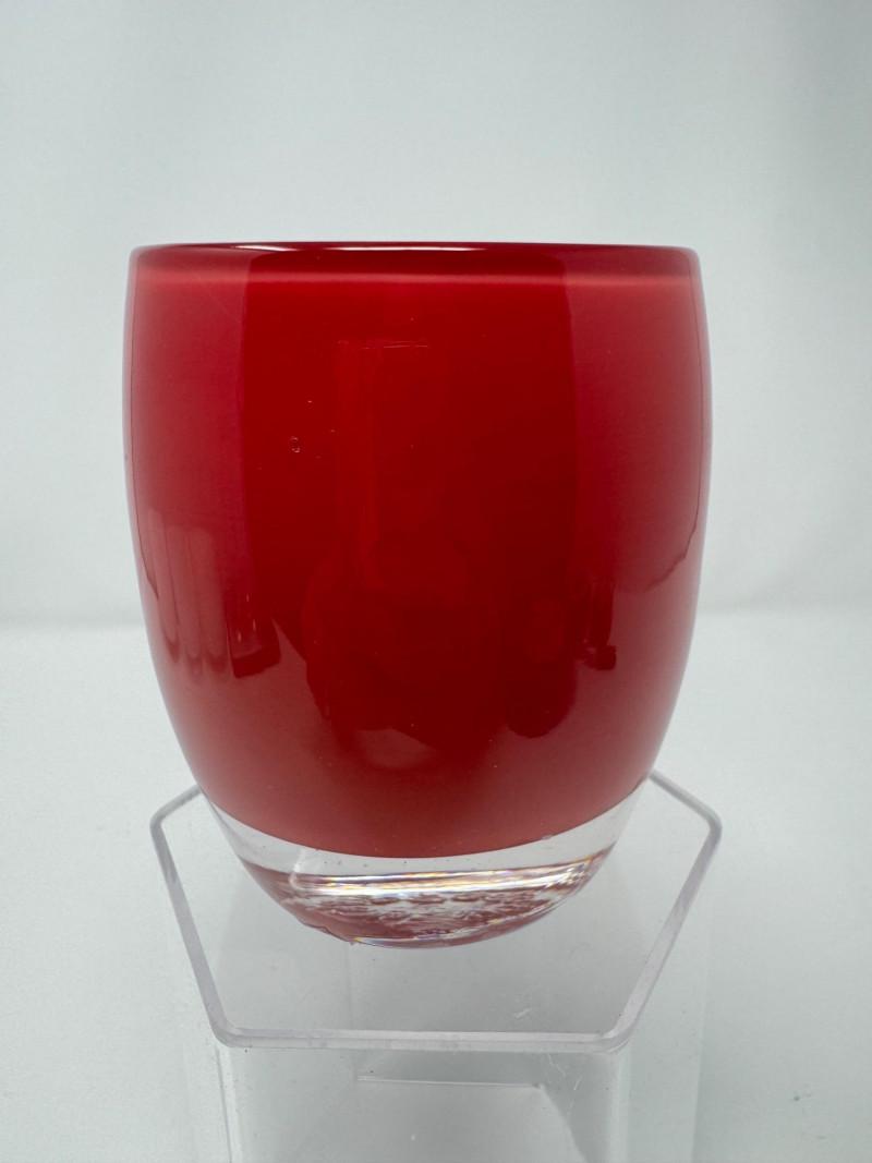 Glassybaby Votive – “Rudolph” Red Handblown Candle Holder #2. 3.5” Tall Some sticky residue remains on the bottom from original label.
