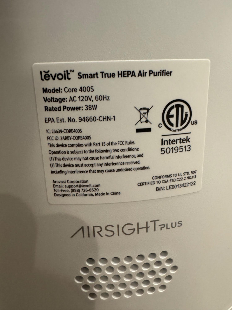 Lot # 11 - Levoit Core 400S Smart True HEPA Air Purifier