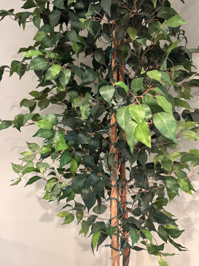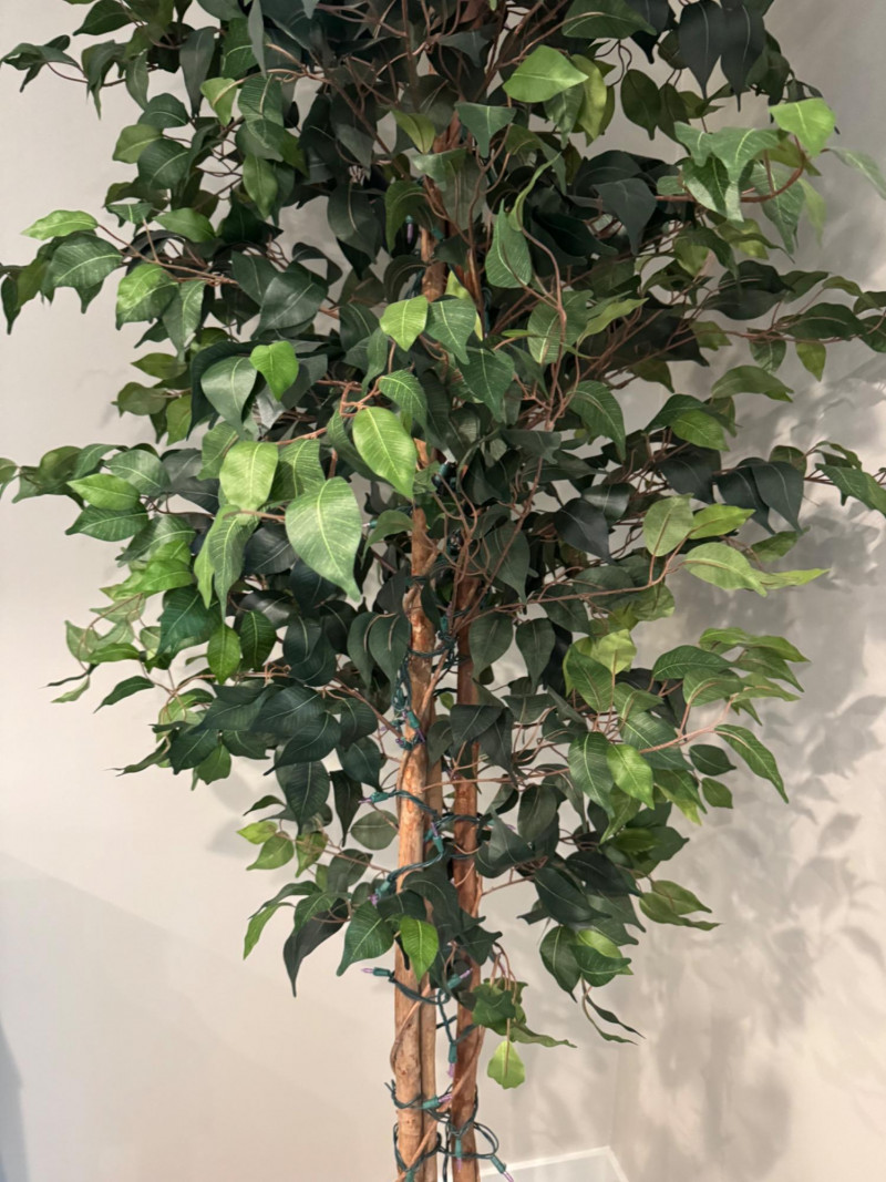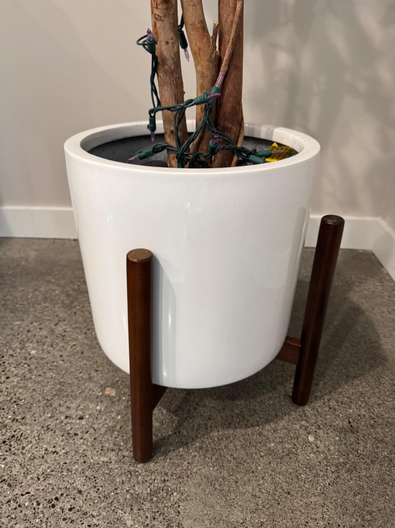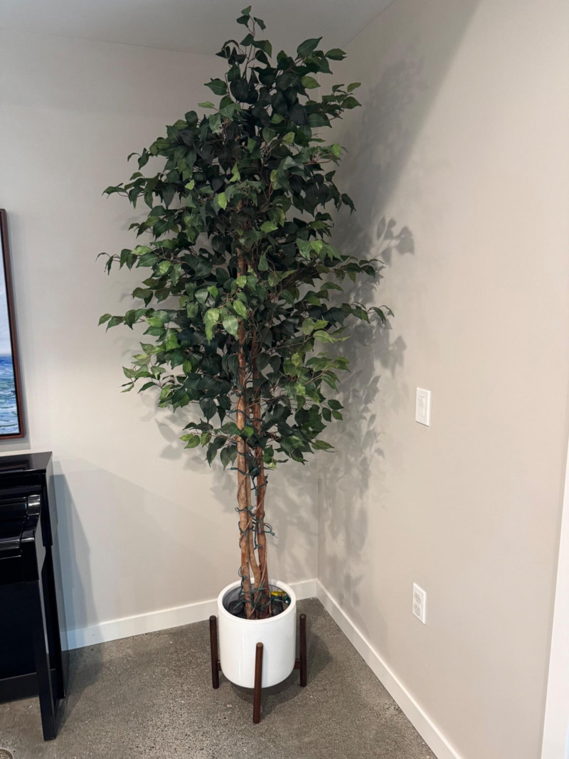 Tall Faux Tree in White Ceramic Planter w/ Wood Stand – 90" H. 🚚 Auction Pickup Reminder: