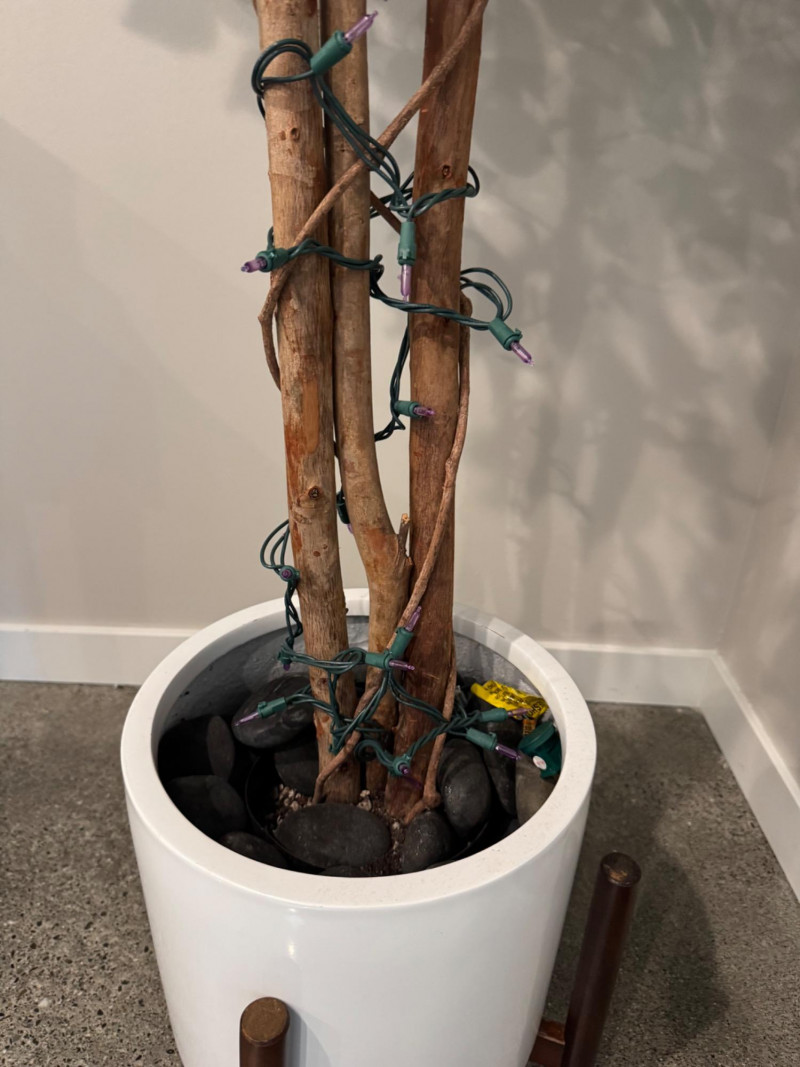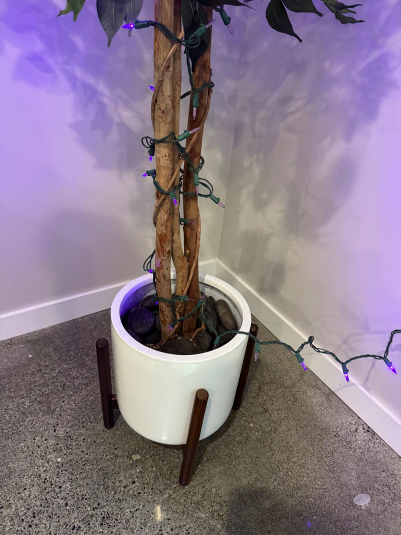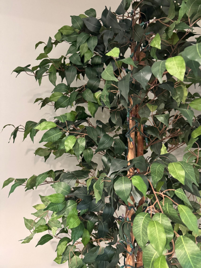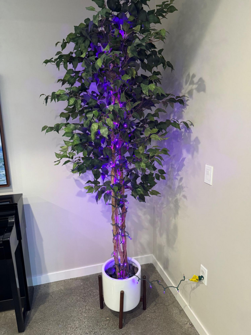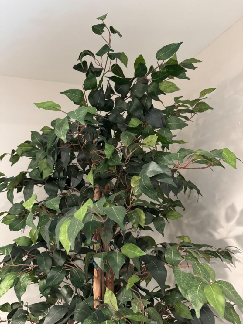 Tall Faux Tree in White Ceramic Planter w/ Wood Stand – 90" H. 🚚 Auction Pickup Reminder: