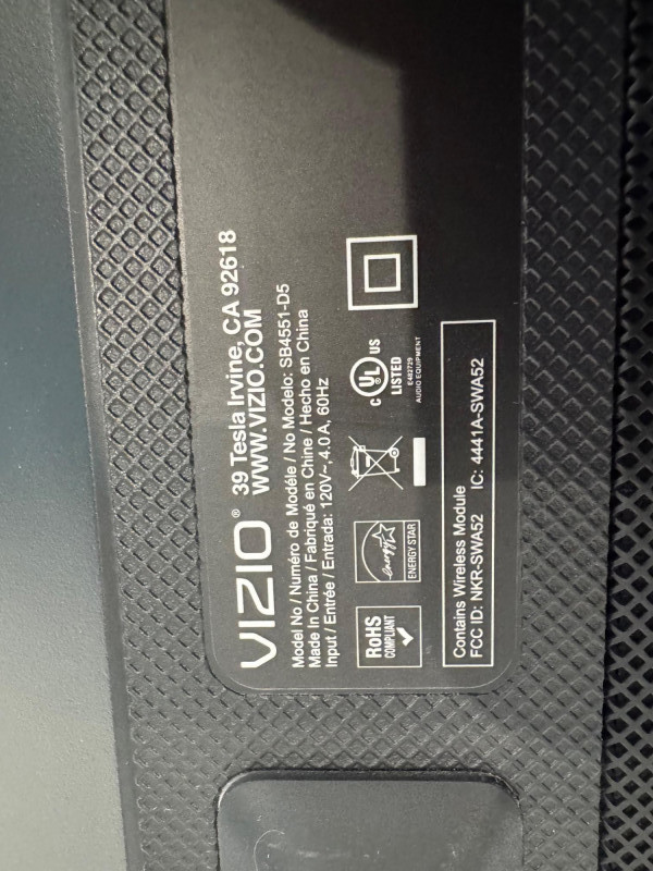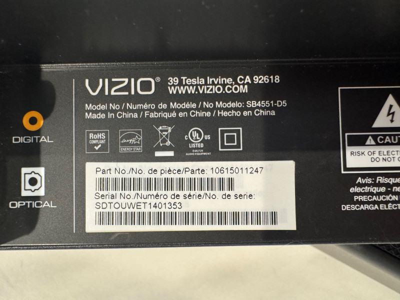 Vizio 5.1 Soundbar System – SB4551-D5 w/ Subwoofer & Rear Speakers. Includes: Soundbar Subwoofer 2 Rear surround speakers Power and connection cables (as shown) 🚚 Auction Pickup Reminder: