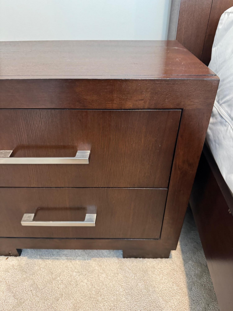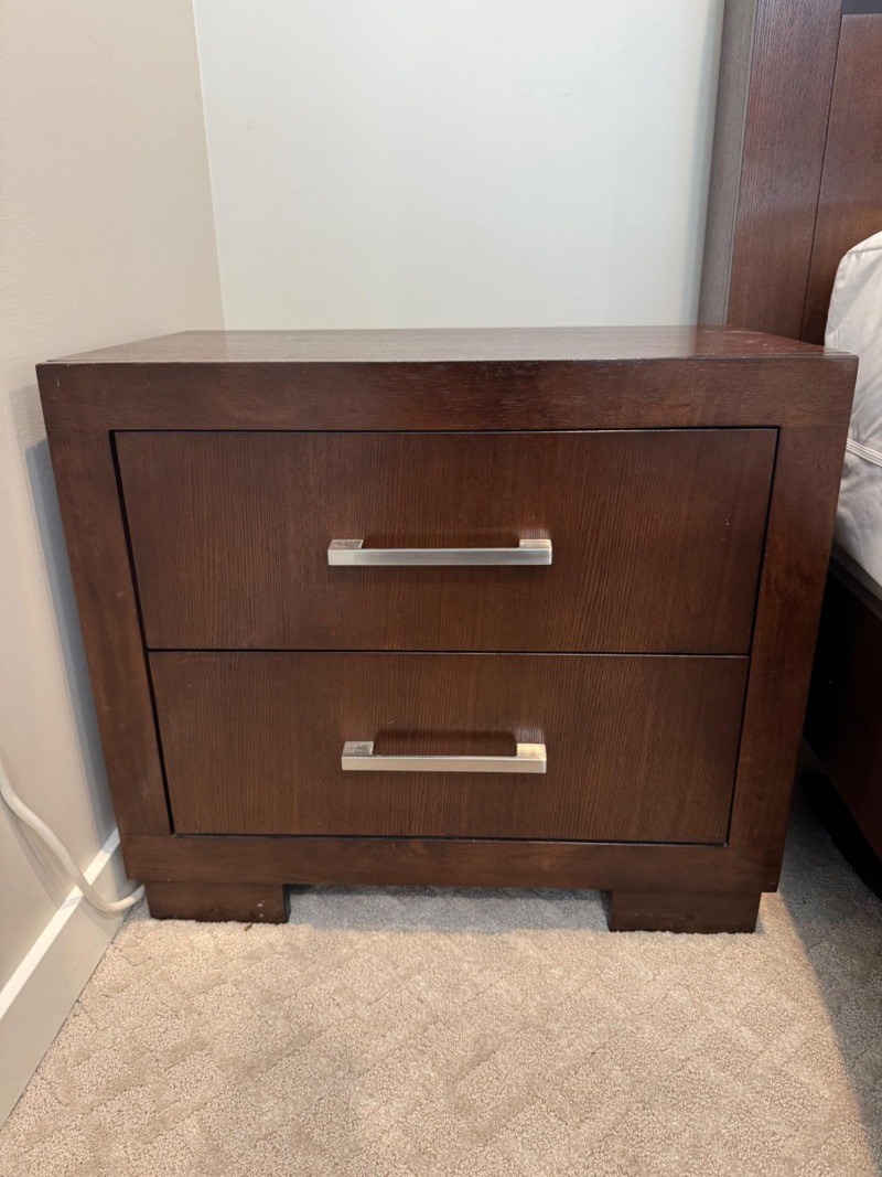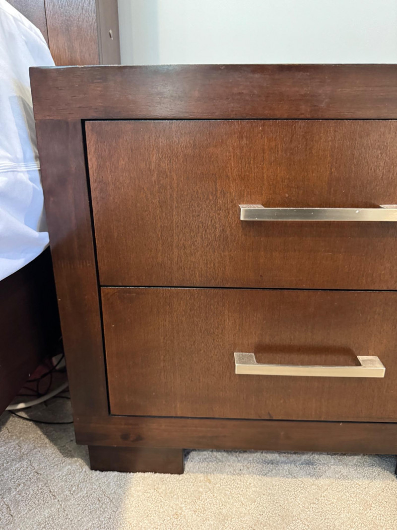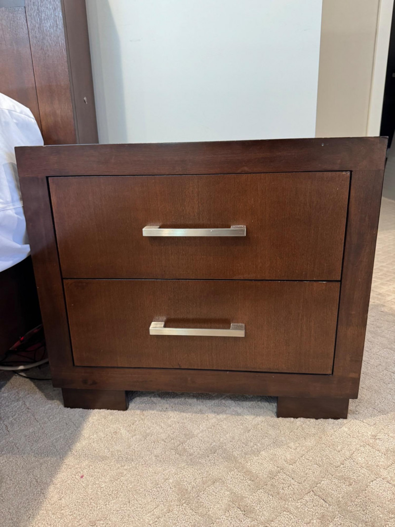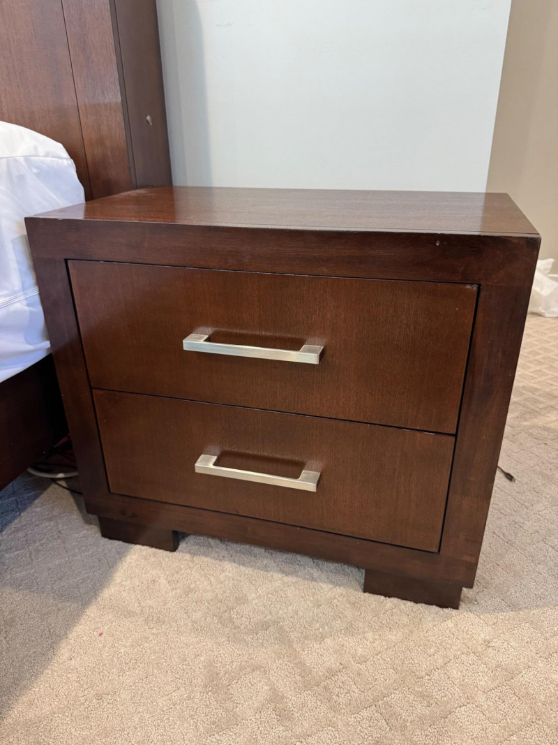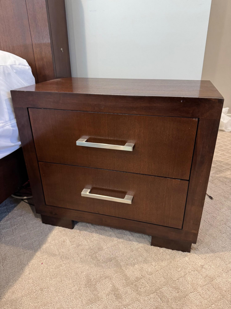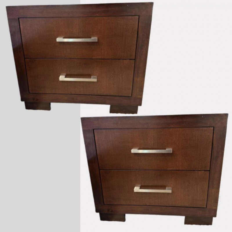 Pair of Coaster 2-Drawer Side Tables – Rich Cappuccino Finish. Dimensions (each): 26" wide 15" deep 23" tall 🚚 Auction Pickup Reminder: